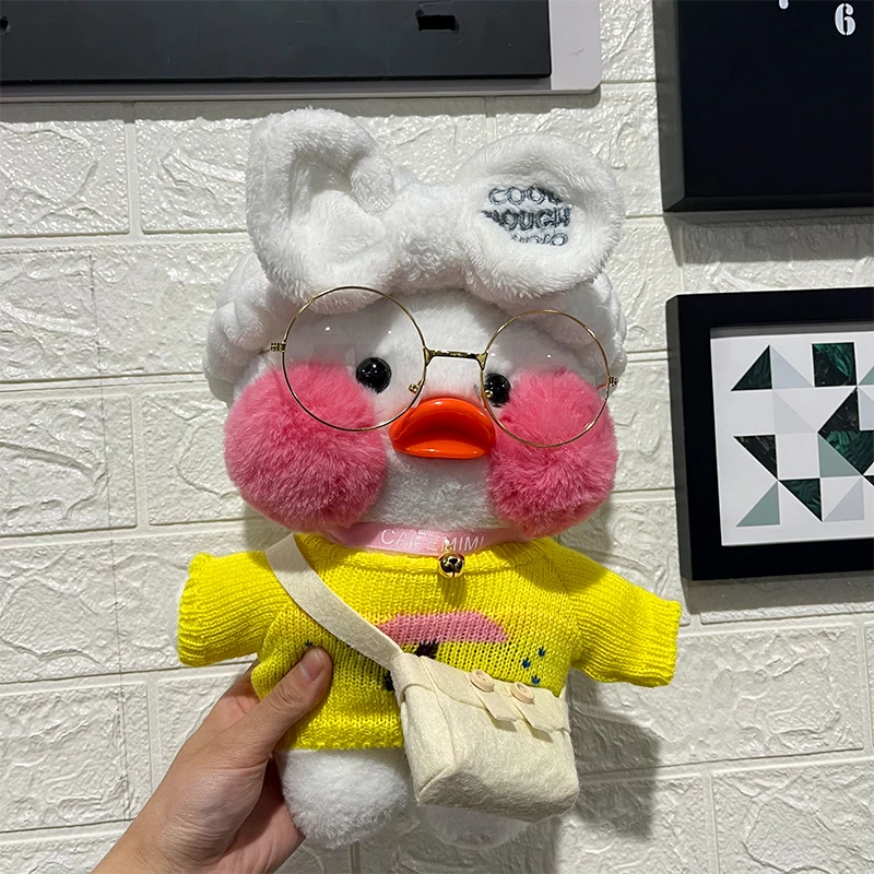 Kawaii Lalafanfan Cafe Mimi желтая плюшевая белая утка с очками кос...