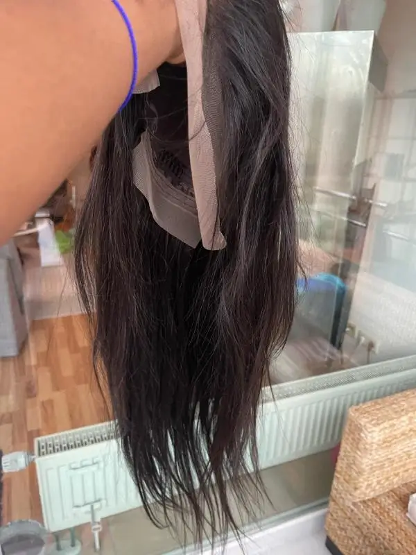 Очень мягкие и длинные волосы длиной 22 дюйма. Через пять дней. Волосы не линяют, когда мои пальцы протирают их или моют, они очень гладкие, в которых я влюблен. Кружево расплавилось в моей коже так хорошо. Получил волосы меньше недели. Настоятельно рекомендуем!