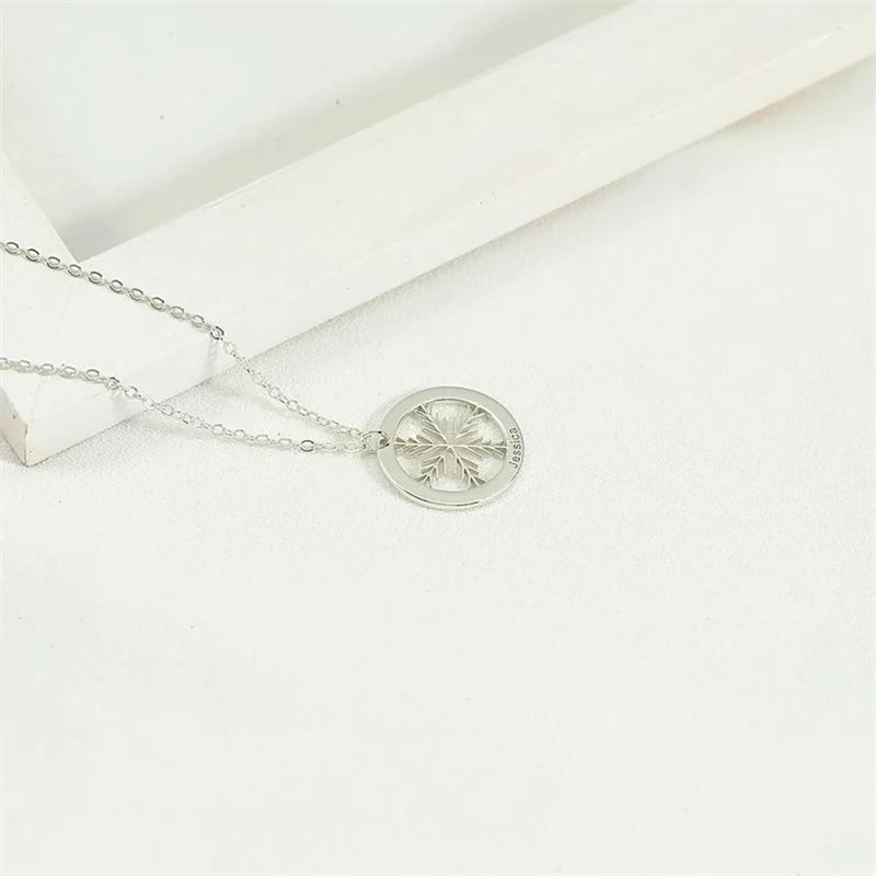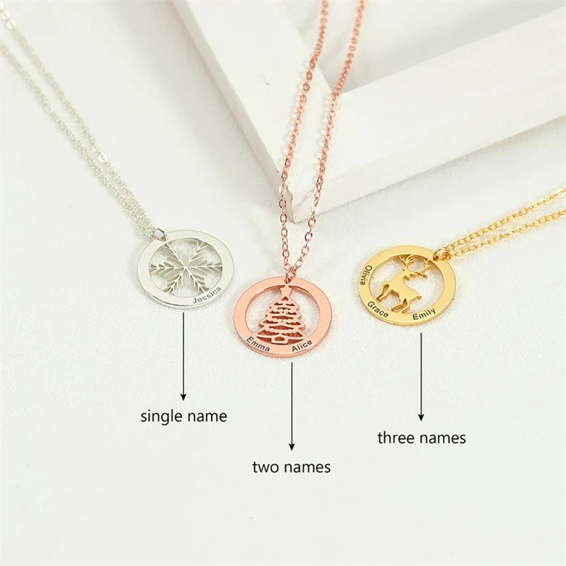 Новый модный дизайн, Рождественский узор, снежинка, олень, гравировка имени, ожерелье из нержавеющей стали, Женский праздничный подарок