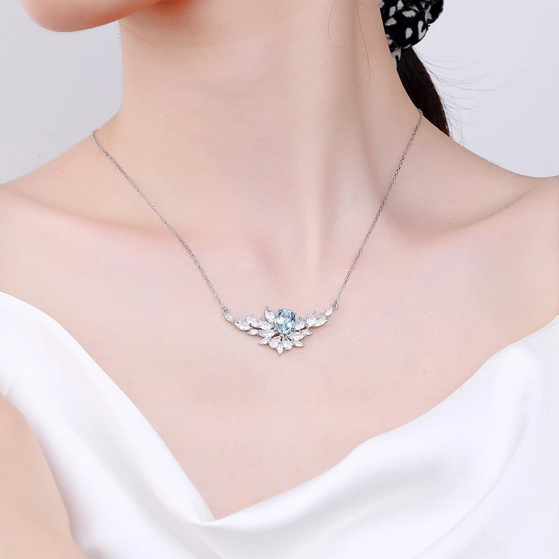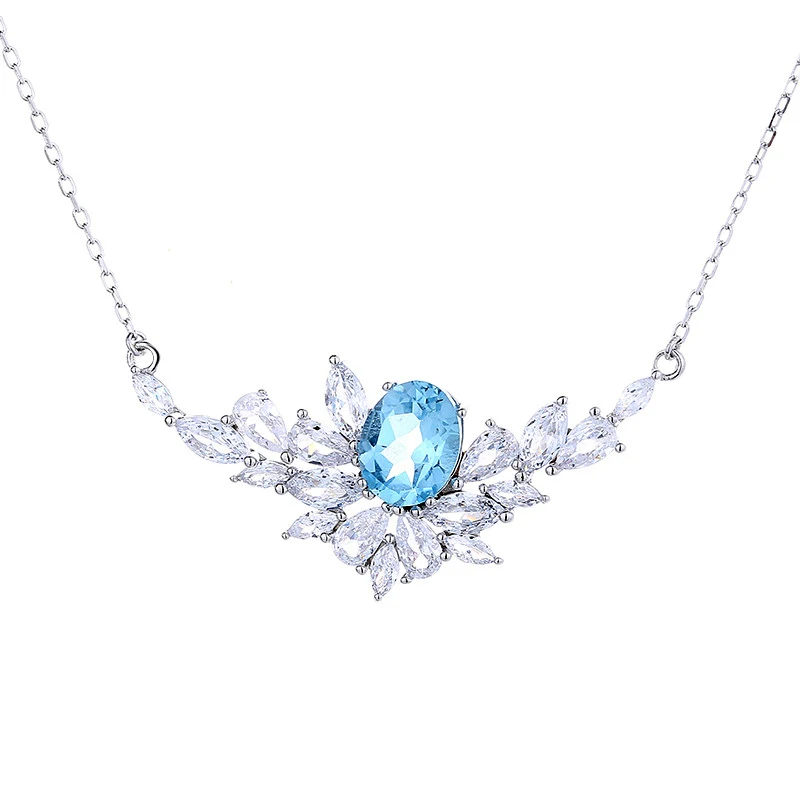 Голубой топаз Изумрудный Рубин Женское Ожерелье S925 серебро ювелирные украшения Свадебная вечеринка подарок на день рождения