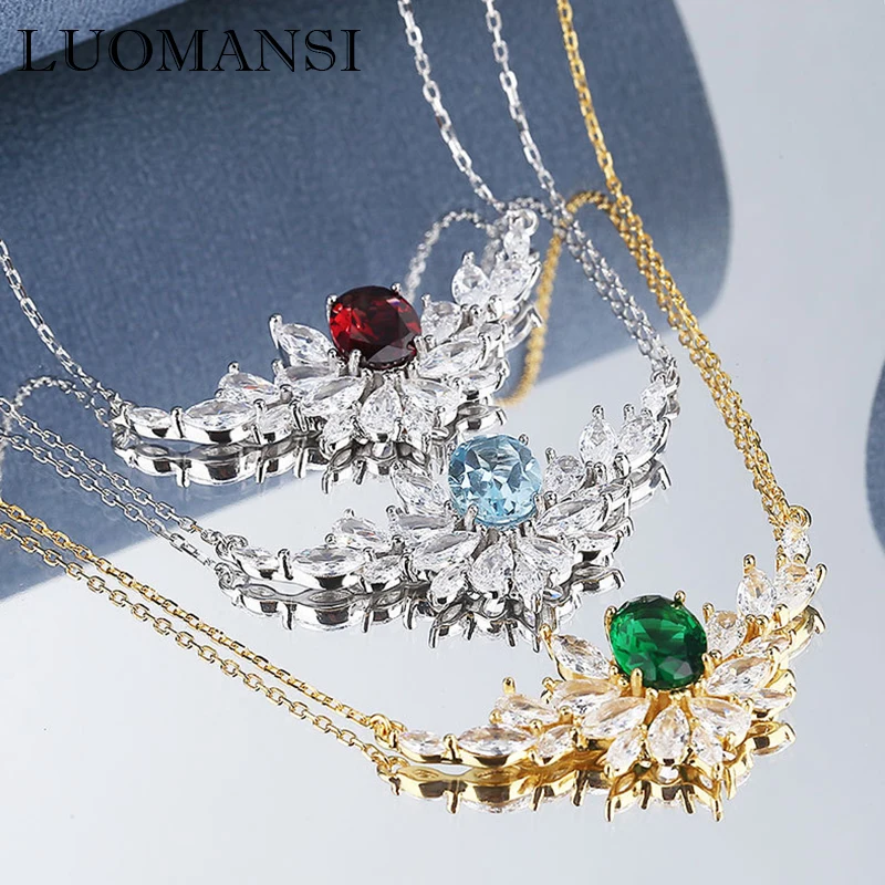 Luomansi, женское ожерелье с голубым топазом, изумрудом, рубином, серебро пробы, ювелирные изделия, подарок на свадьбу, вечеринку, день рождения