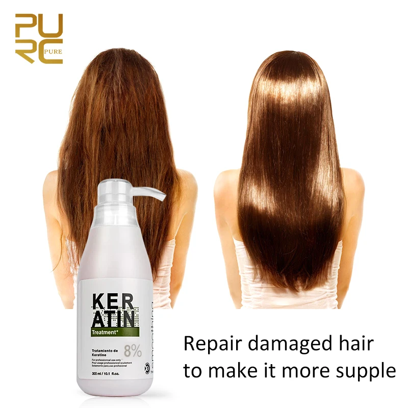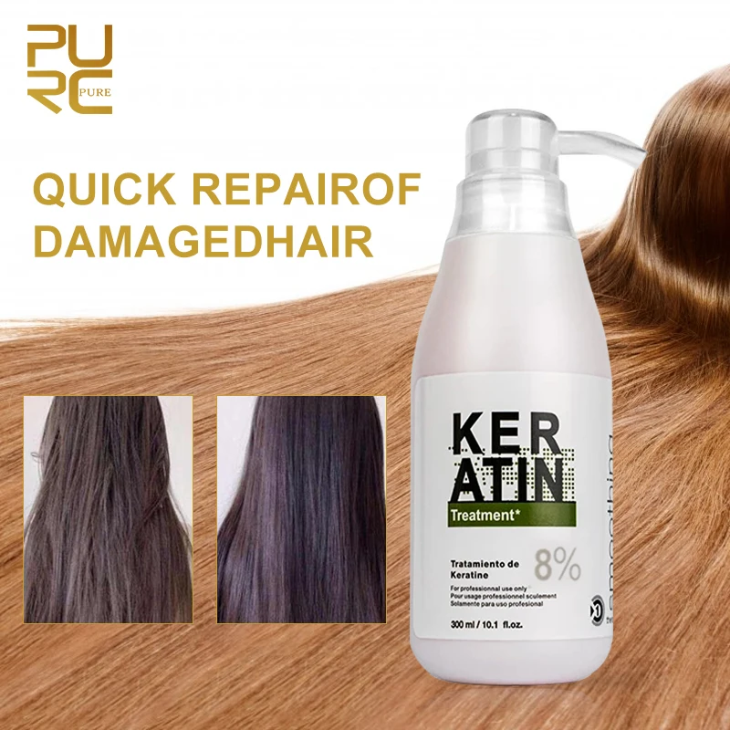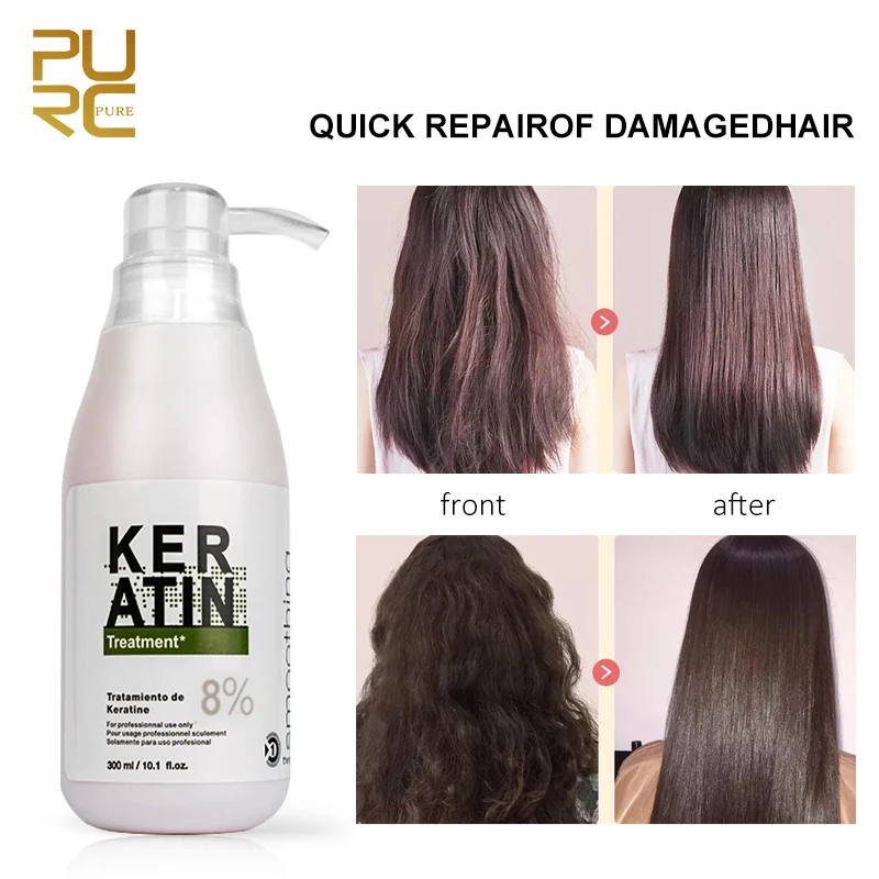 Бразильские кератиновые волосы PURC для выпрямления волос 8%/12% Формалин 300 мл устраняет завивки и делает блестящие и гладкие волосы