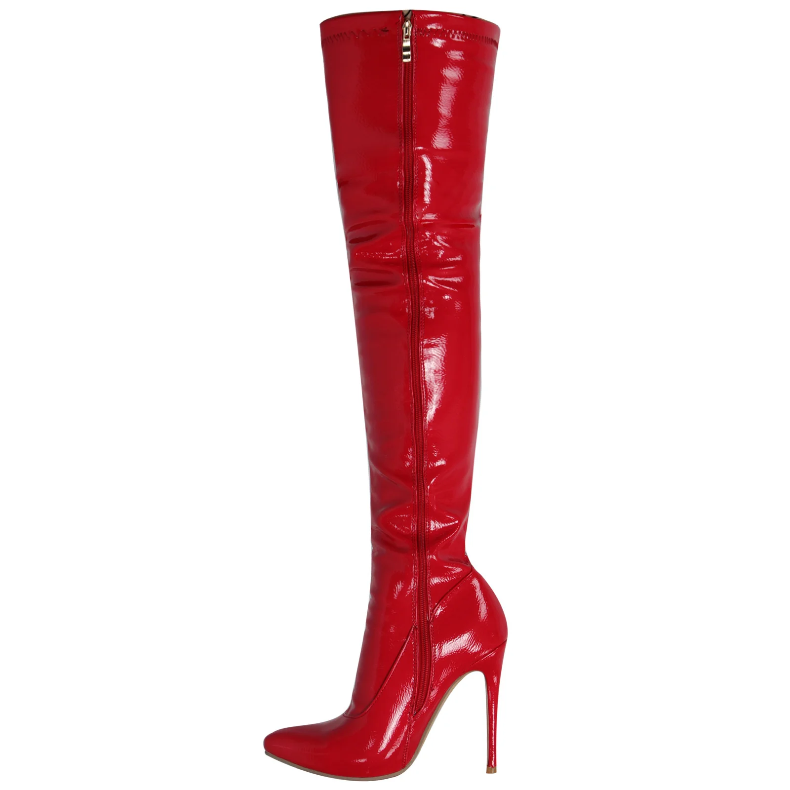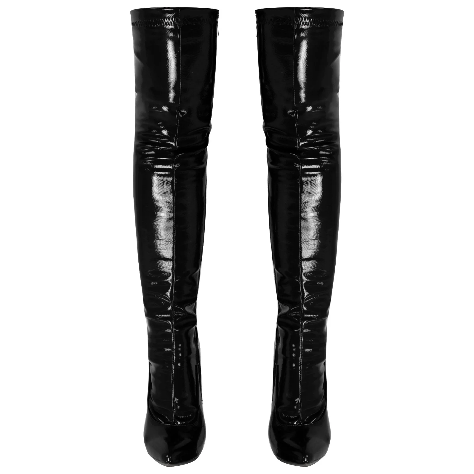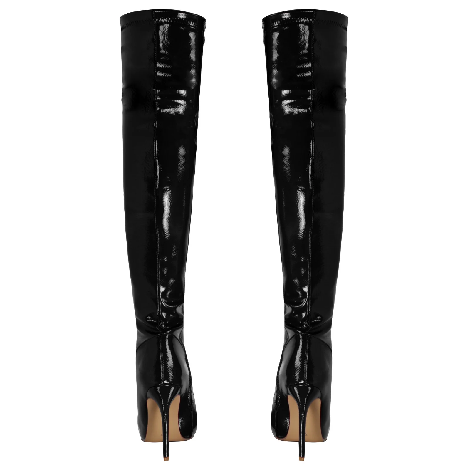 Женские сапоги с острым носком, на высоком тонком каблуке, из лакированной кожи