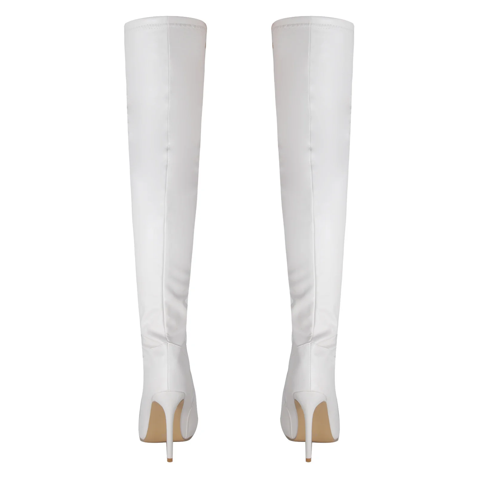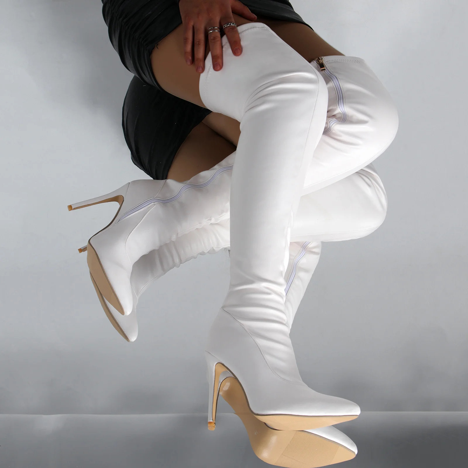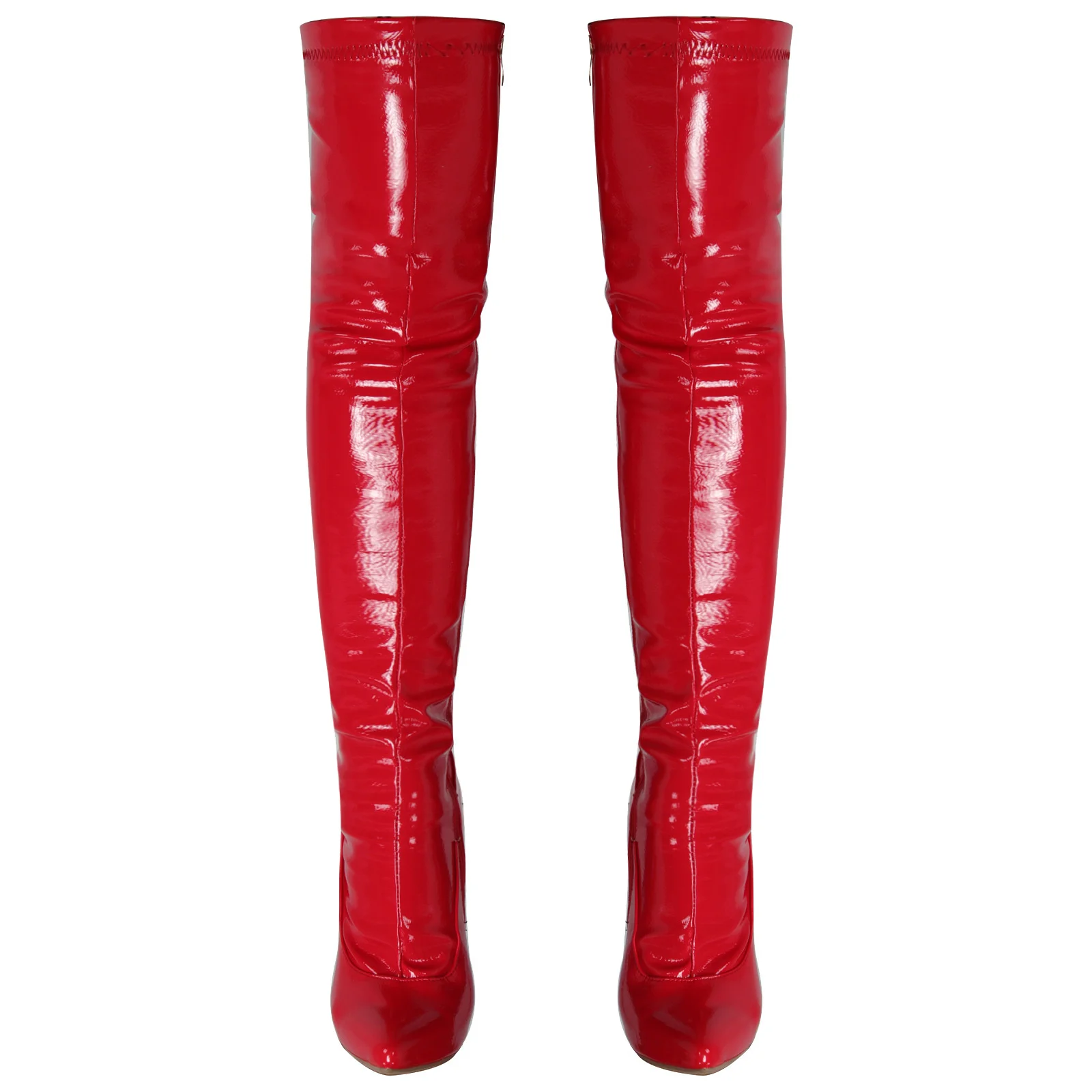 Женские сапоги с острым носком, на высоком тонком каблуке, из лакированной кожи
