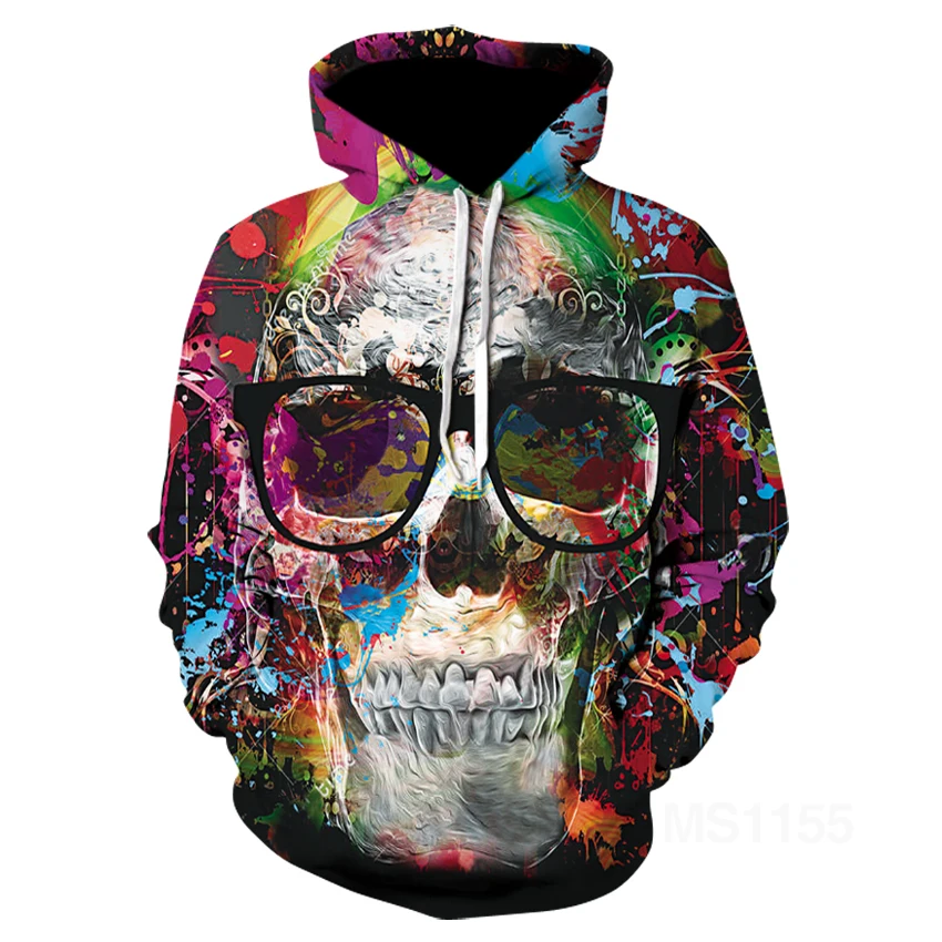 Толстовка с 3D рисунком черепа для мужчин и женщин, Мужская толстов...