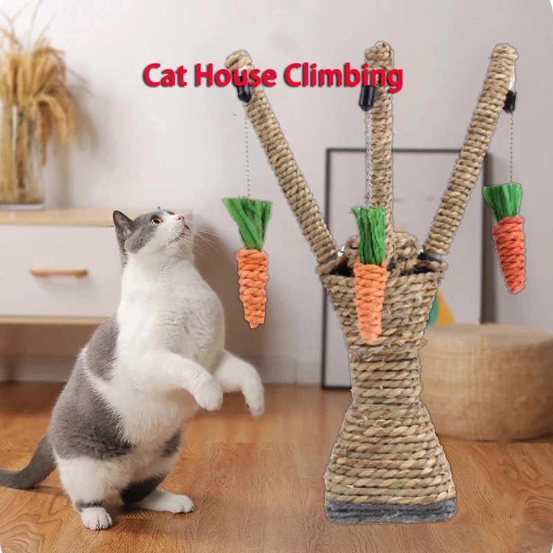 Скребок для кошек и моркови, Интерактивная Деревянная башня для домашних животных, домик с рамой для скалолазания, игрушечная мебель