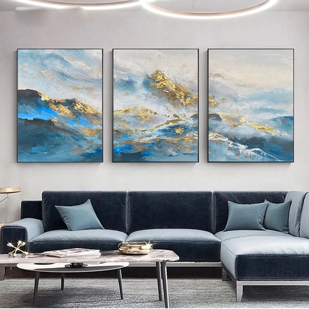 Красивые фотообои для домашнего декора ручная работа абстрактная полностью Алмазная вышивка триптих с золотыми горами