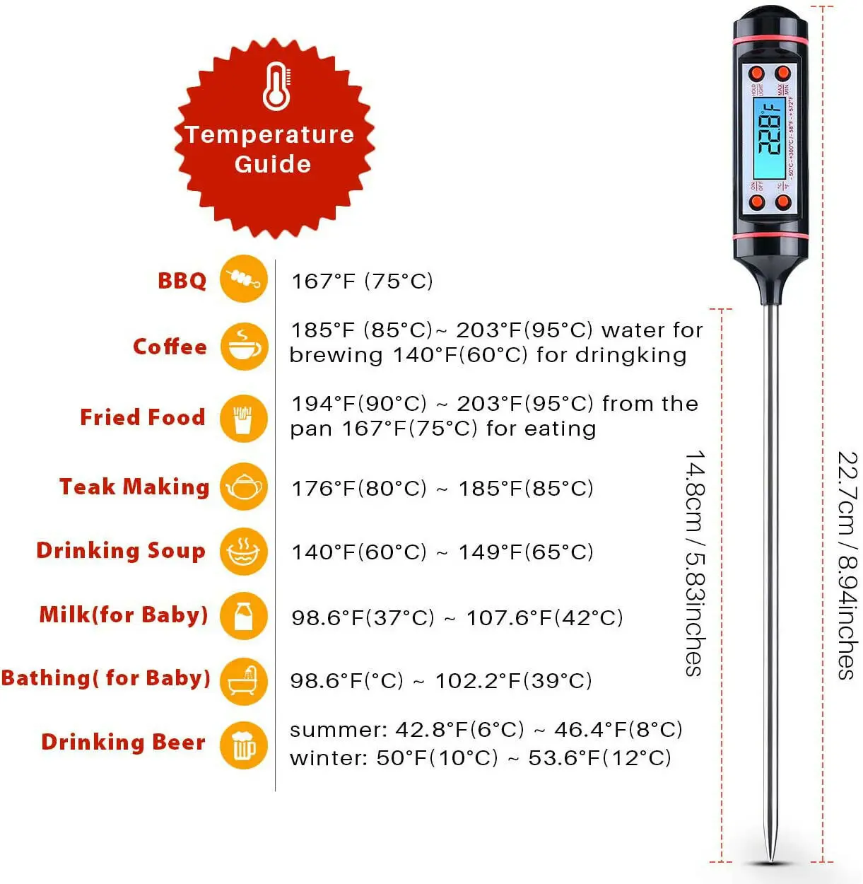 Электронный цифровой пищевой термометр, бытовой термометр с длинным щупом для измерения температуры торта, сладостей, фри, барбекю, мяса