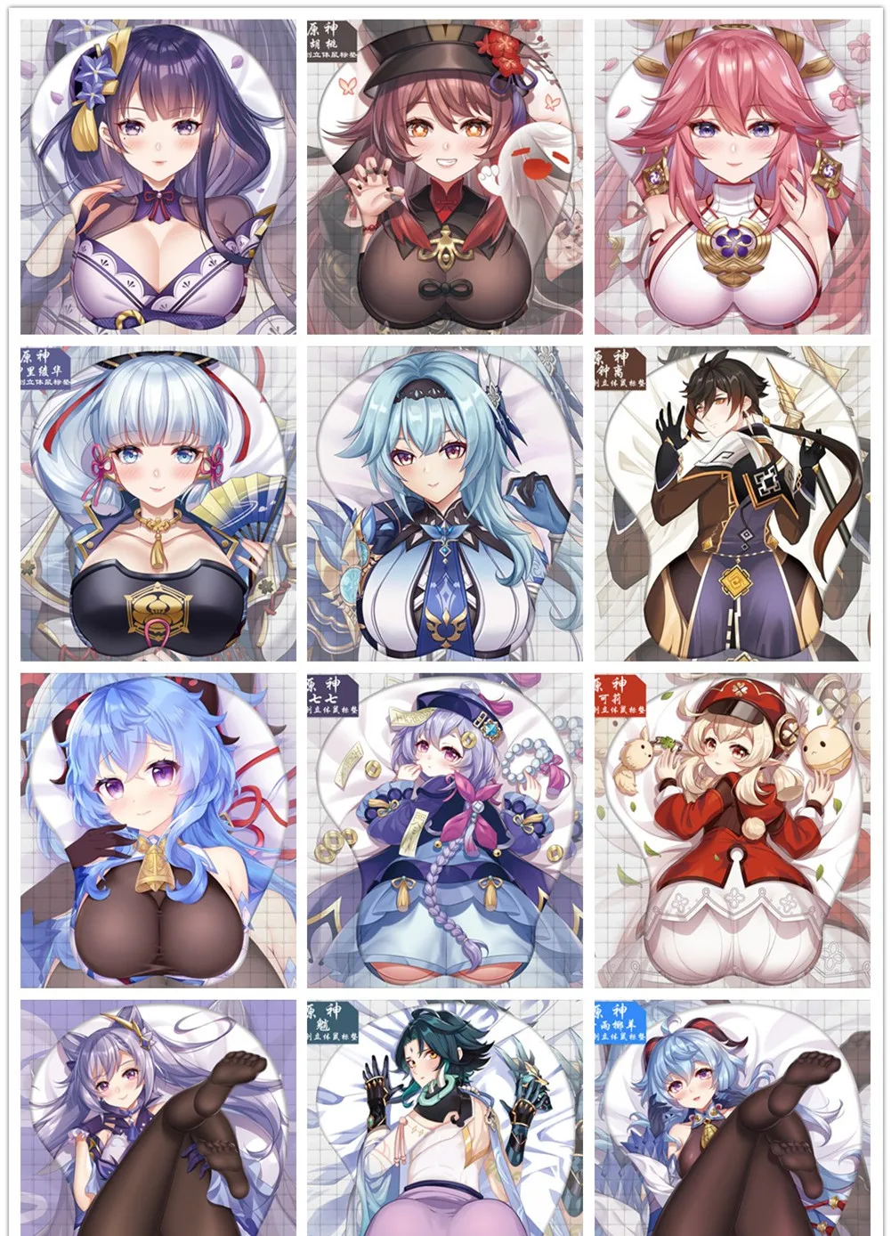 Подставка для косплея Genshin Impact, привлекательный коврик для мыши, 3D коврик для груди, подставка под запястье, мягкий гелевый игровой коврик, подарок Ganyu Zhongli Xiao Eula