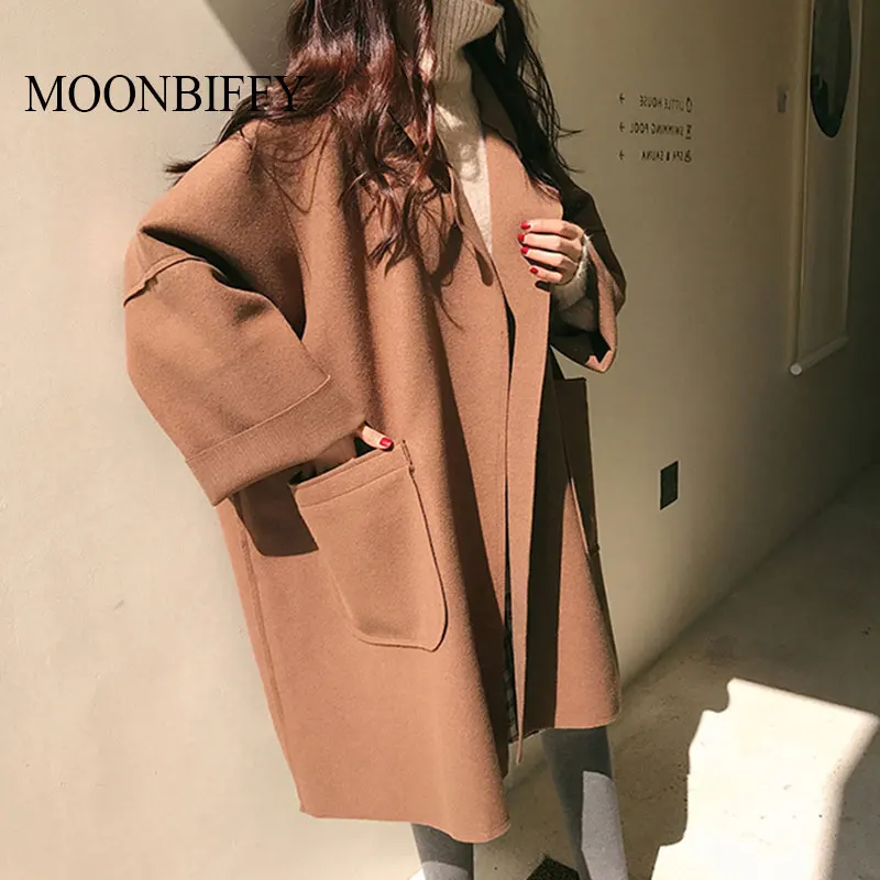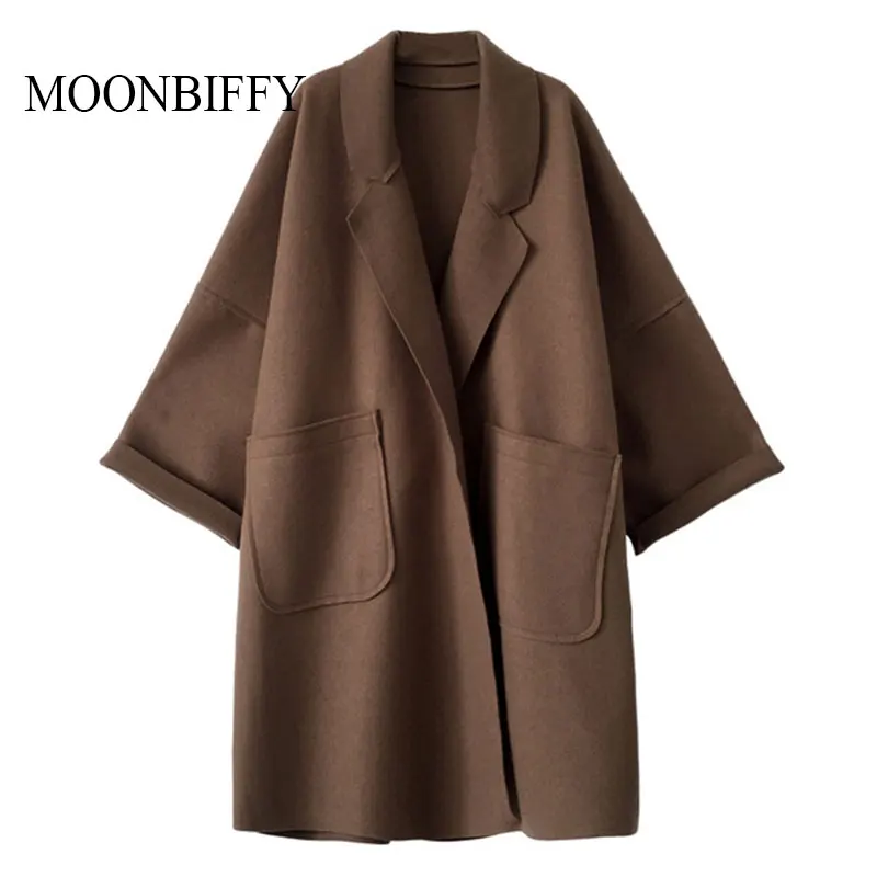 Женское длинное кашемировое пальто, свободное кашемировое пальто из...