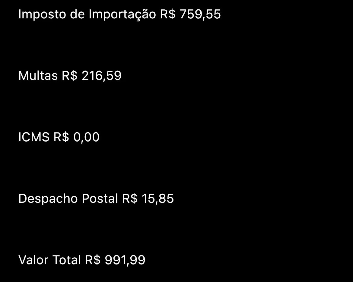 Я сделал покупку, и товар был остановлен на таможне, и это заняло более 2 месяцев. По истечении этого периода я обнаружил, что это связано с тем, что продавец неправильно разместил информацию, и поэтому я был оштрафован сверх платы. Я уже знал, что это будет облагаться налогом, потому что все в оценках сказали, что это уже подготовлено, но я не был готов к штрафу и ее причине. Штраф и плата были в тысяче реалов. Я отказался от объекта, чтобы я мог вернуться и только тогда обнаружил то, что никто не говорит. Вы не можете отказаться от объекта, который был оштрафован, после отказа он не возвращается отправителю, и вы больше не можете получить, идите в почтовое отделение на аукцион и Зарабатывайте деньги за свой счет позже. Я не смог получить возмещение, продавец сделал это так сложно, как только мог, и AliExpress купил его сторону. Теперь это проглотить потерю оплаты за продукт, которого у меня нет, и узнать, как система работает с клиентами, являются ли они национальными органами или самой платформой, которая вообще не помогает пользователю.