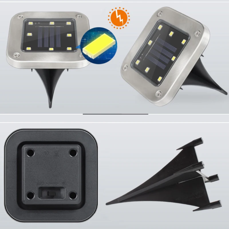Светодиодный ночник на солнечной батарее для газона, 8 светодиодов, IP65, водонепроницаемый уличный фонарь для дорожек, пола, под землей, точечный светильник