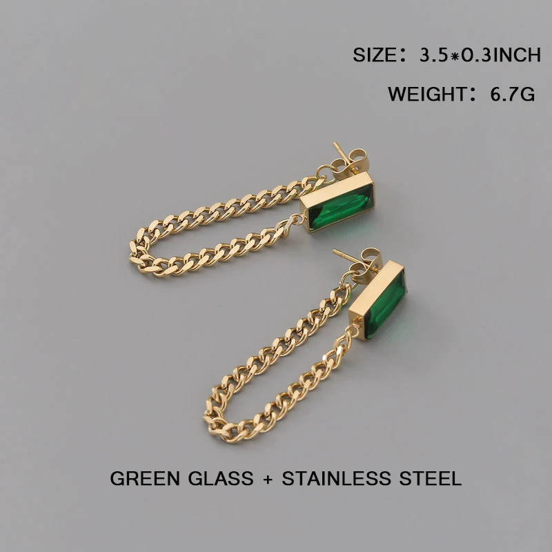 Классические геометрические прямоугольные зеленые стеклянные серьги-цепочки из нержавеющей стали с кисточками темпераментные необычные аксессуары для женщин ювелирные изделия