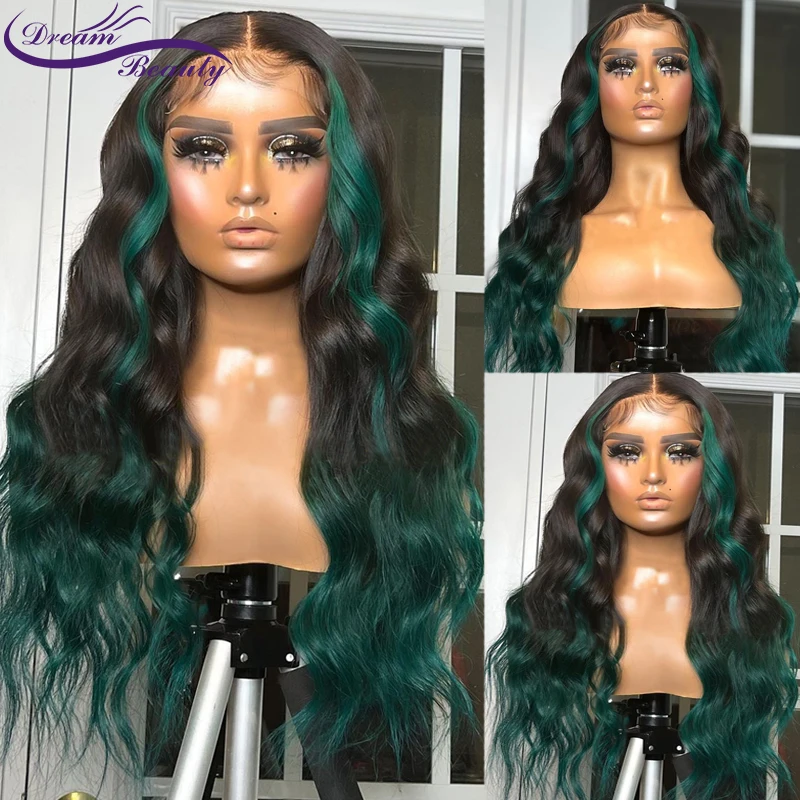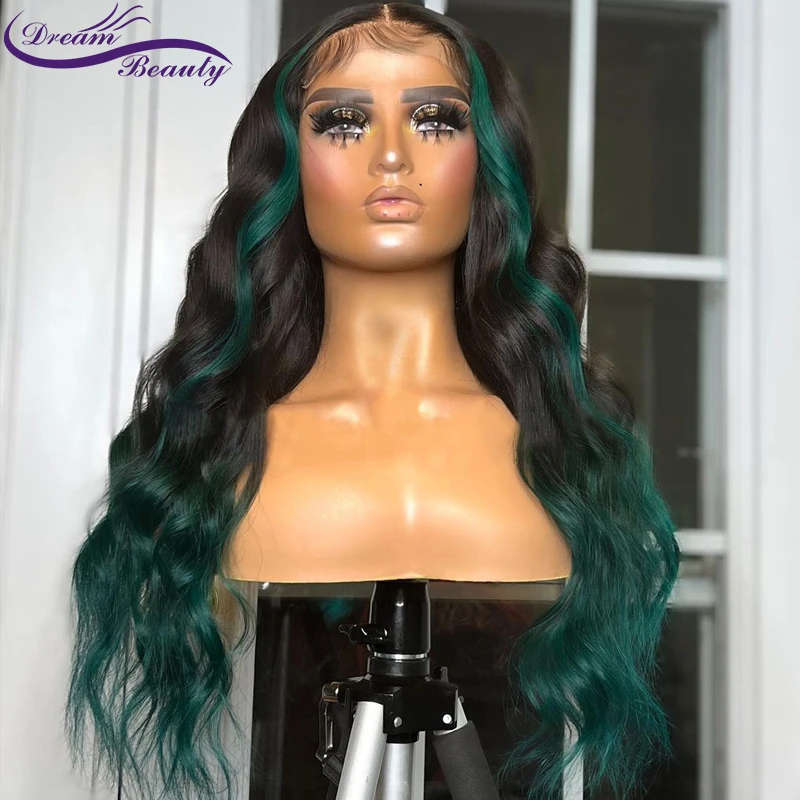 Выделяемая зеленая цветная 13x 4 кружевная передняя часть искусственные перуанские человеческие волосы парик Реми волосы 4x4 закрывающий парик для женщин