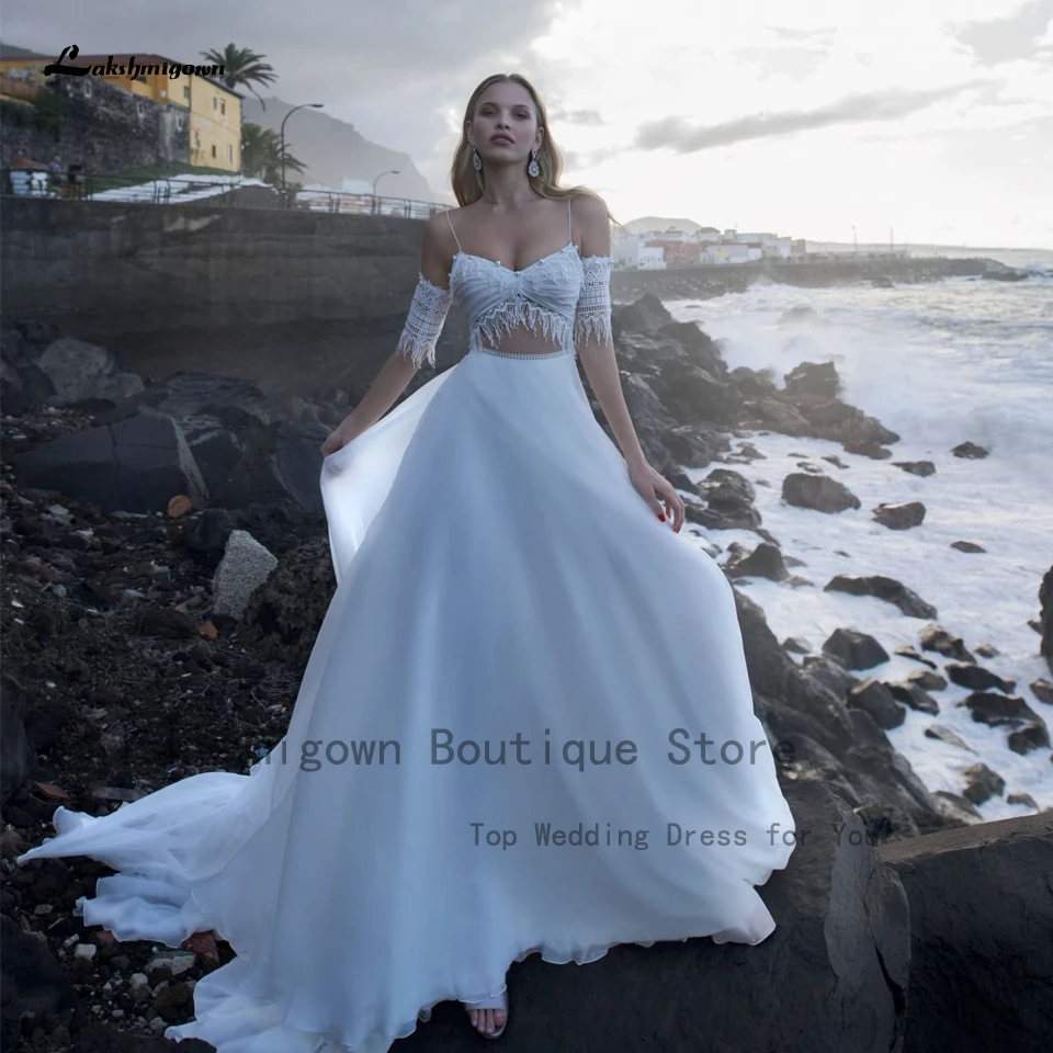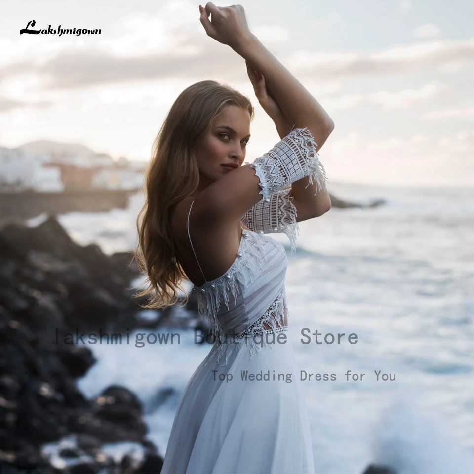 Lakshmigown 2 шт. кружевное свадебное платье в стиле бохо пляжное летнее 2022 свадебное сексуальное шифоновое длинное свадебное платье на бретелях