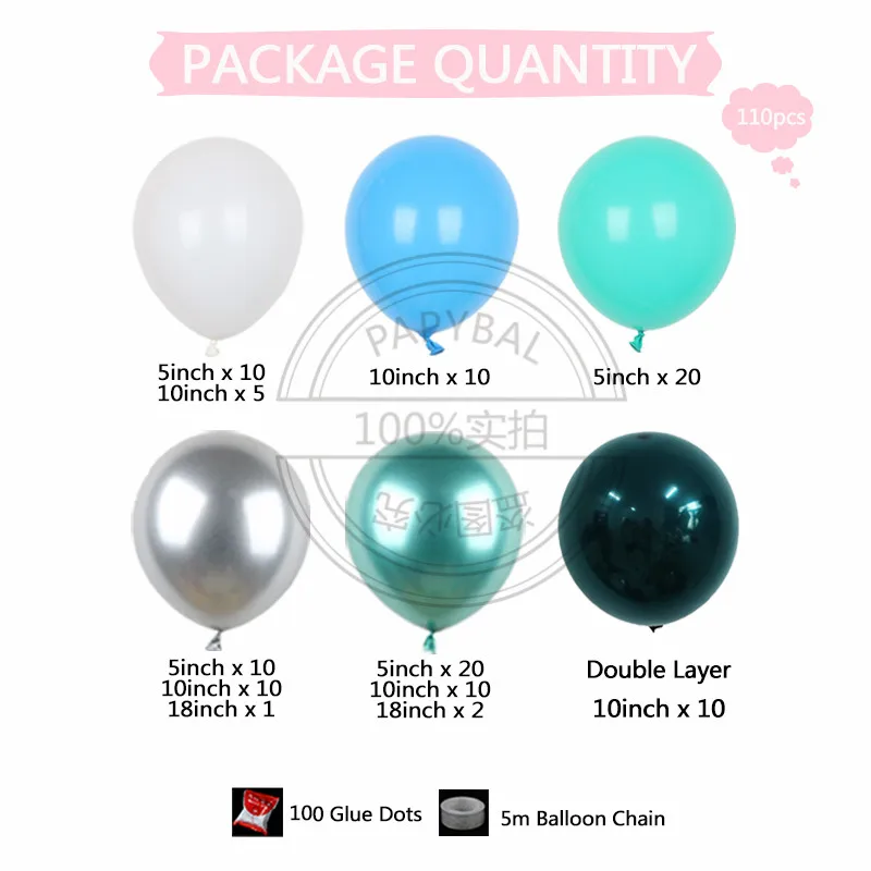 110 шт., латексные воздушные шары Тиффани, цвет голубойбелый