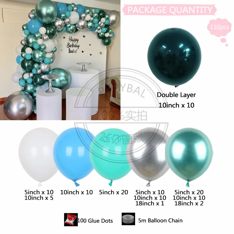 110 шт. Тиффани Синий Белый Шар АРКА комплект гирлянды Хром золотой зеленый латексный шар для свадьбы День рождения украшения