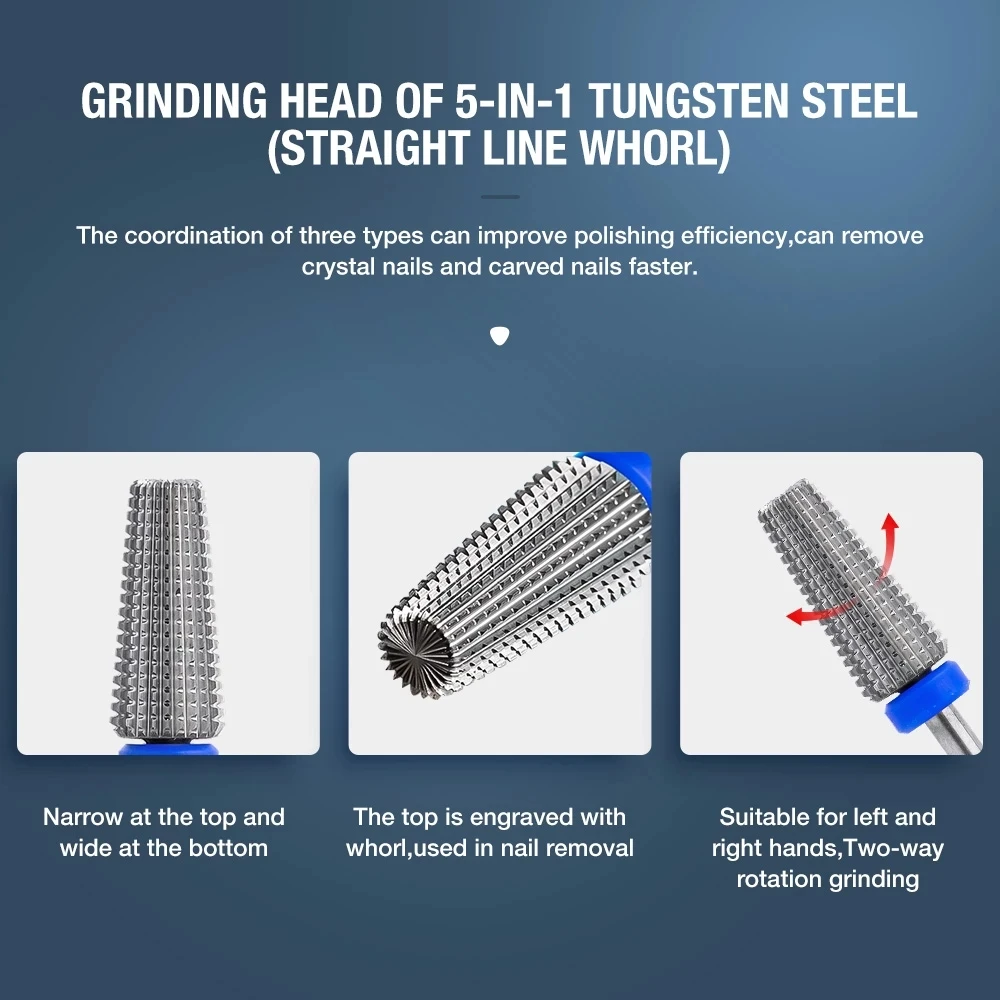 Фрезы для ногтей 5 в 1, безопасные конические, карбидные, удаление ...