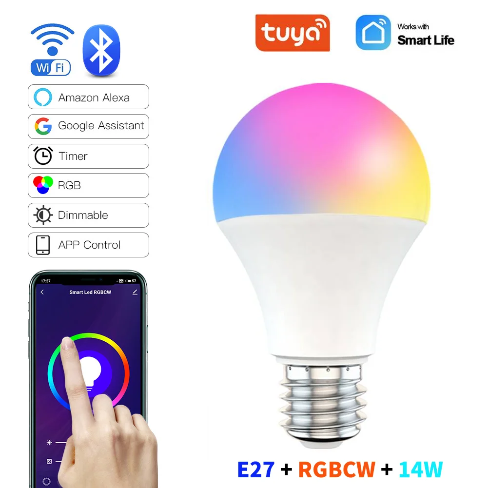 Умсветильник Светодиодная лампа с Wi-Fi, 14 Вт, E27, 220 В, RGBCW