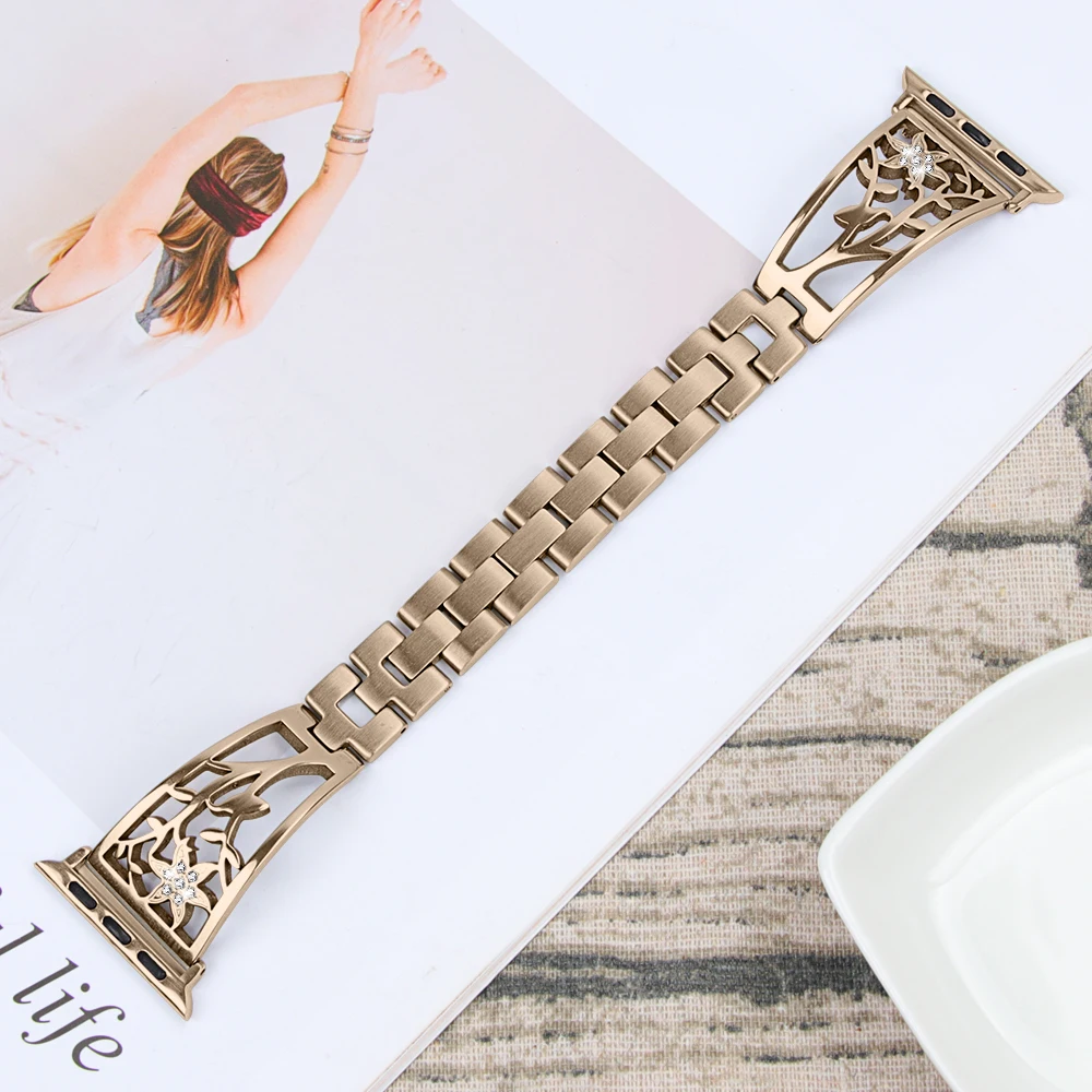 Металлический ремешок для Apple Watch Band 40 мм 44 мм 41 мм 45 мм женское кольцо с бриллиантом браслет из нержавеющей стали для iWatch 42 мм 38 мм SE 7