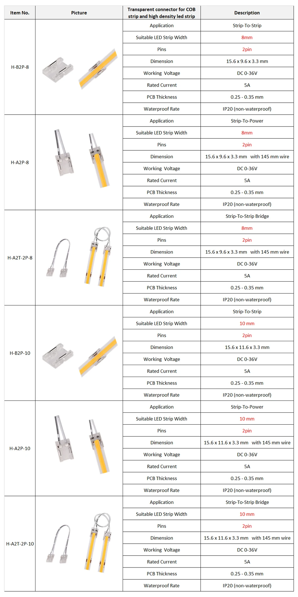 5 шт 2pin прозрачные светодиодные полосы разъем 8 мм 10 мм для 2835 5050 3528 COB светодиодные полосы света IP20 одиночные двухконцевые разъемы