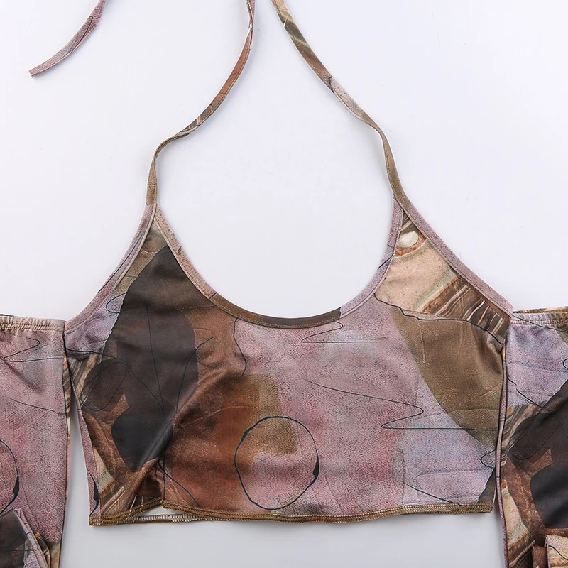 Топ с лямкой на шее, Женский коричневый корсет, топ, укороченный то...