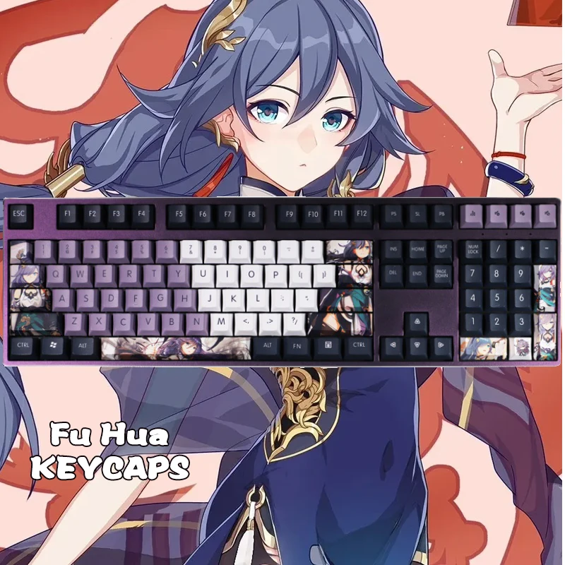 Механическая клавиатура Honkai Impact 3 Fu Hua, декоративная клавиатура 108 PBT, красивая аниме клавиатура, косплей, рождественские подарки
