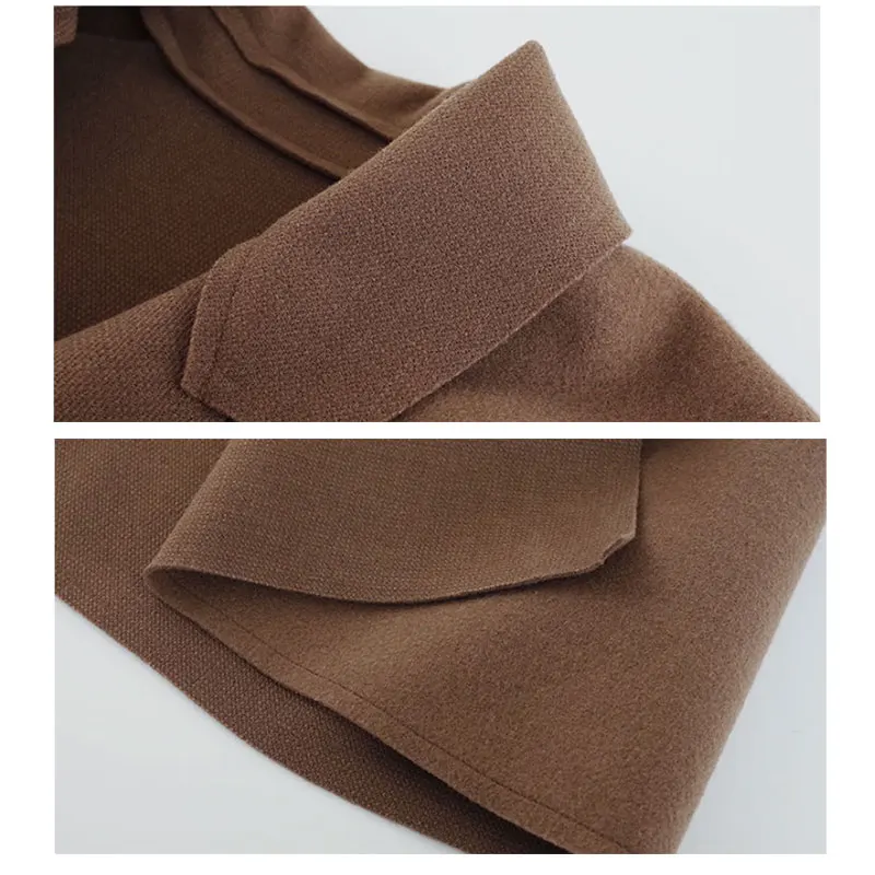 Женское весеннее пальто, новинка 2022, коричневое модное шерстяное ...