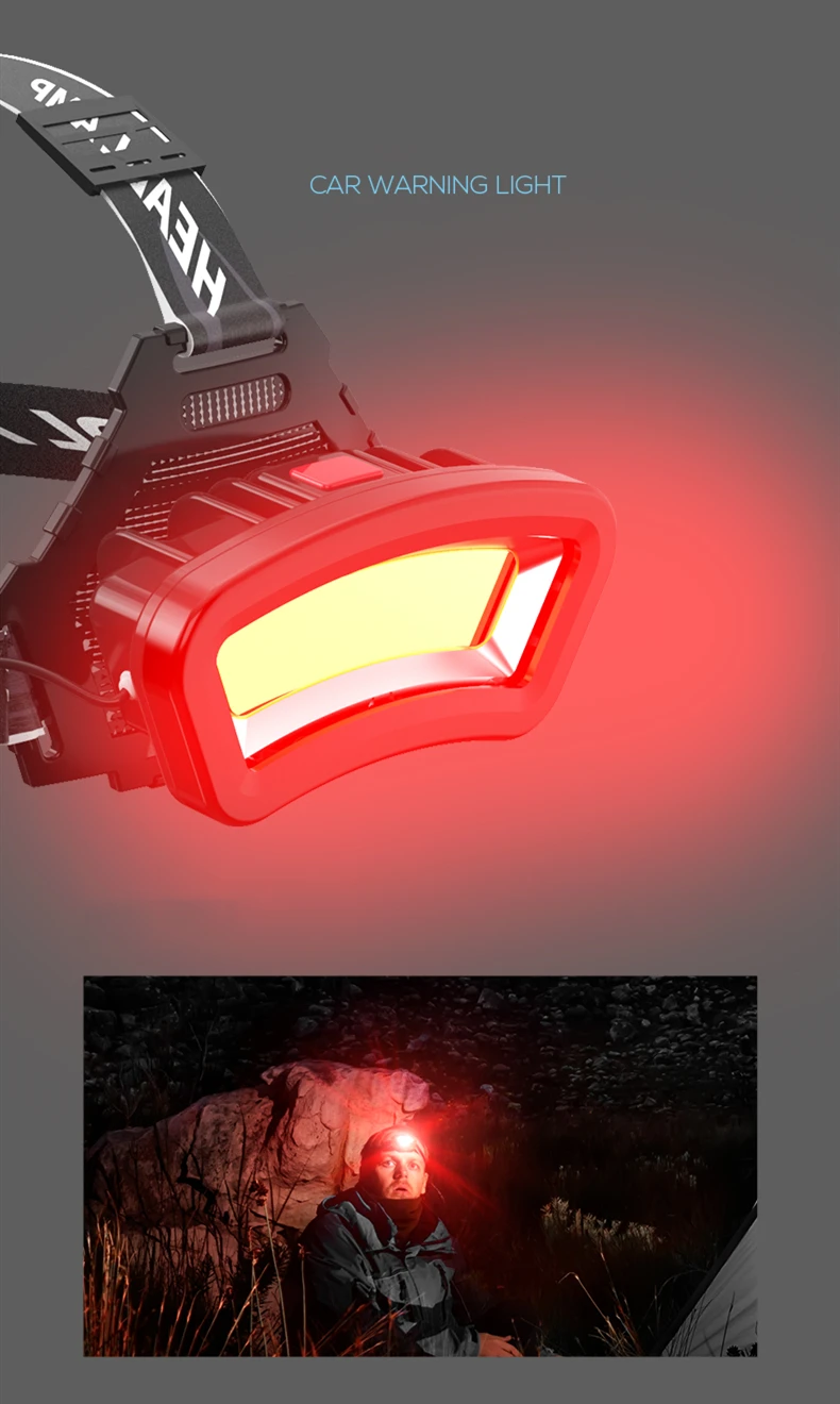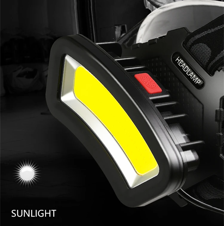 Мощный USB Перезаряжаемый налобный фонарь с аккумулятором 18650, водонепроницаемый COB светодиодный светильник, Предупреждение ющий светильник, передний светильник