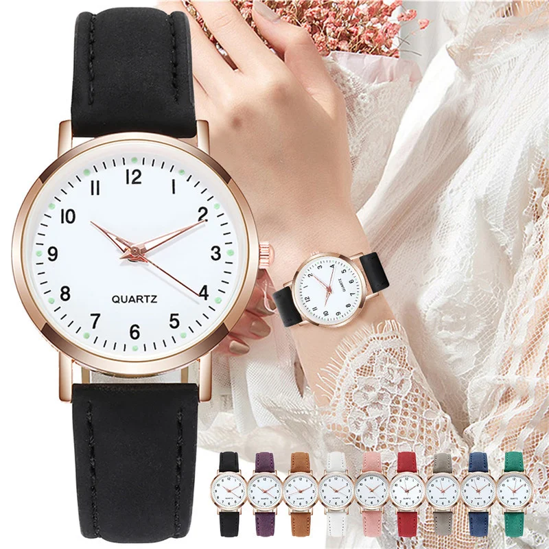 Часы наручные женские кварцевые, светящиеся с арабскими цифрами, роскошные с кожаным ремешком, Прямая поставка