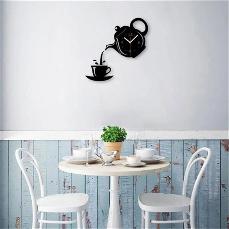 3D чайник для кофейной чашки, самоклеящиеся акриловые зеркальные часы, настенные наклейки s для дома, гостиной, Декор, настенные часы, настенные часы, часы