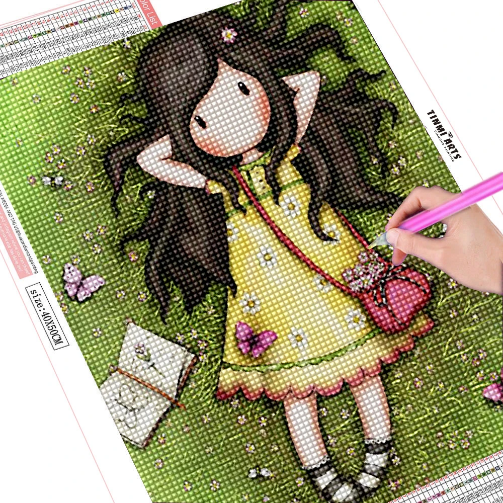 5D DIY наборы для алмазной живописи круглая мозаика с AB Drill мультяшная маленькая девочка вышивка мозаика домашний декор