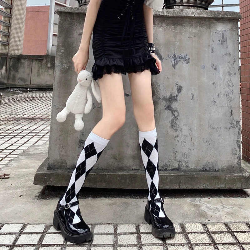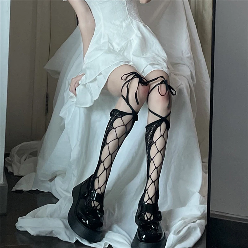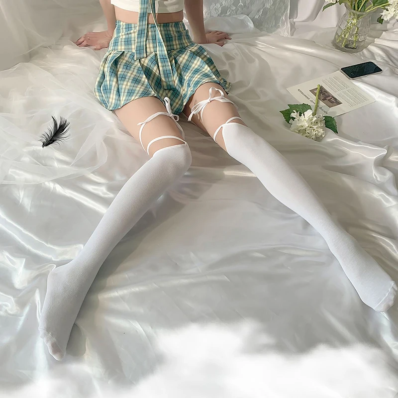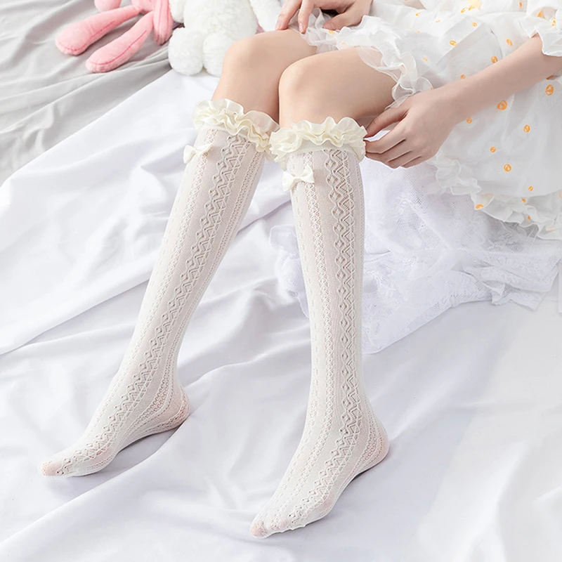 Черно-белые кружевные гольфы до бедра в стиле "Лолита" женские милые длинные кружевные гольфы в японском студенческом стиле ультратонкие сексуальные