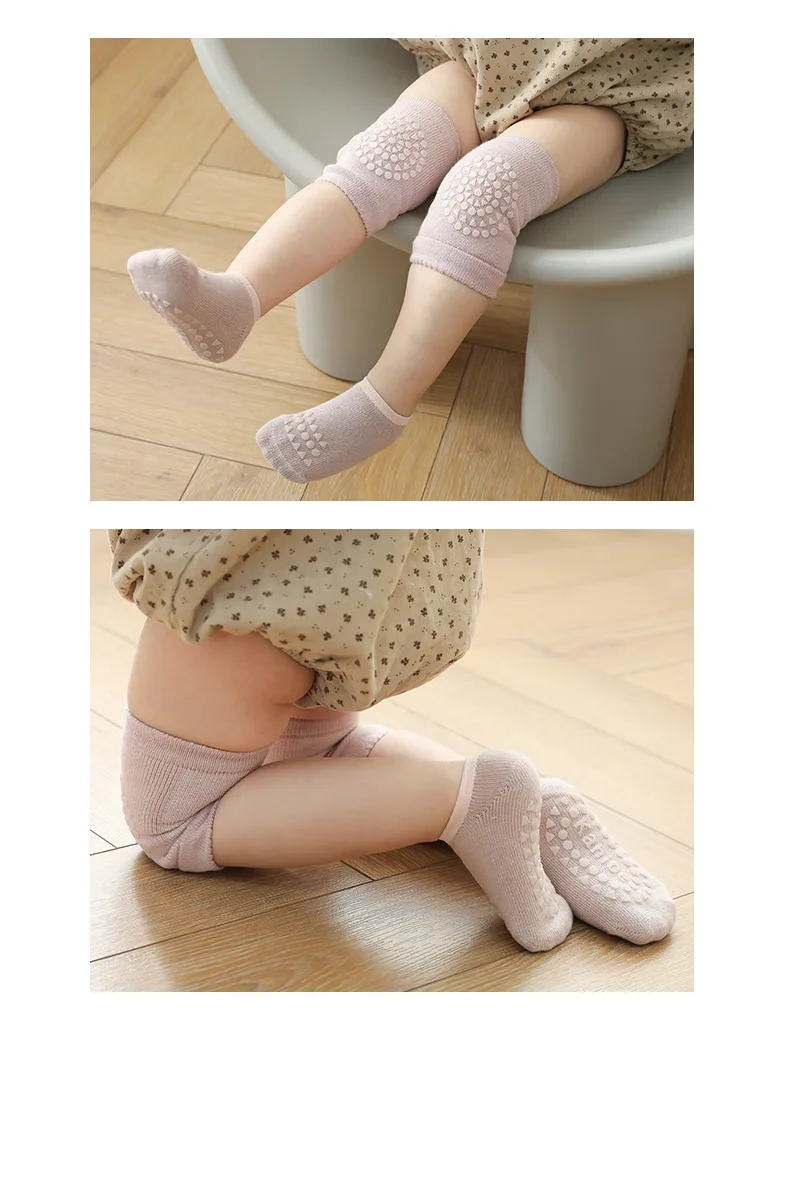 Детские наколенники, носки, однотонные нескользящие носки, наколенники для ползания, безопасные носки для пола для девочек и мальчиков