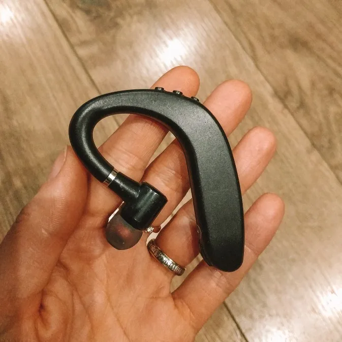 Наушник беспроводной выполнен из довольно качественно матового пластика. Поворотная ушная часть, можно ставить в любое ухо. С телефоном сконектился сразу. Разговор слышен отлично. Музыку тоже слышно хорошо, но правда громкости не очень хватает и низких басов как для меня мало.Есть клавиши громкости на наушнике. Зарядка от micro USB. Кабеля нет в комплекте Пришел за 20 дней. Упакован простенько. Продавец ответственный. Рекомендую.