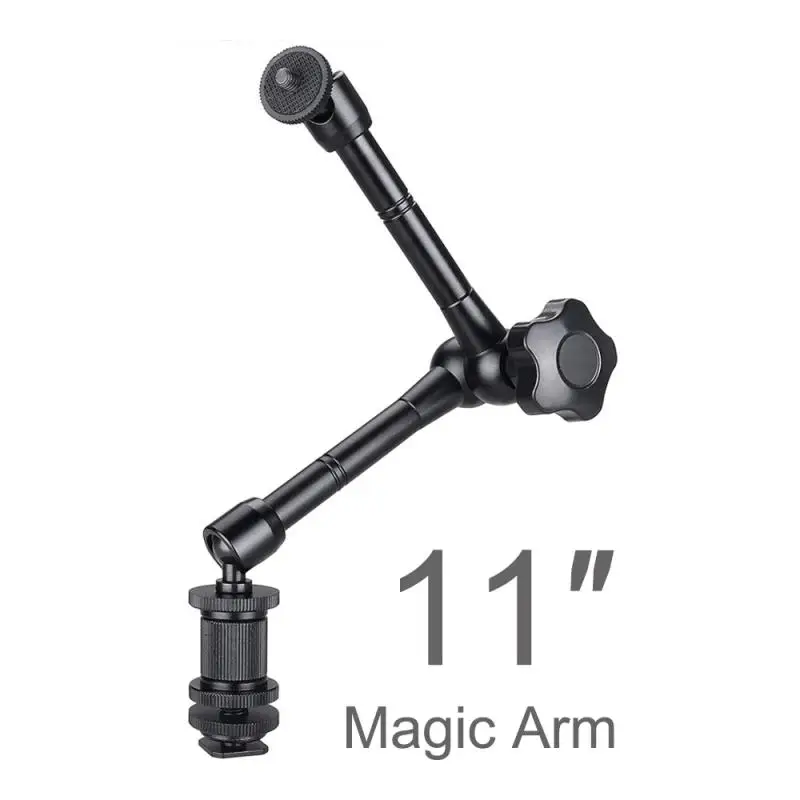 MAGIC ARM-одна сторона имеет 1/4 "винт, соединяющийся с монитором, светодиодный светильник или другие аксессуары. Другая сторона-это квадратное крепление для горячего башмака, которое можно легко установить на камеру DSLR. И это крепление для горячего башмака является съемным, чтобы стать еще одним винтом 1/4 ", поэтому оба конца-винт 1/4", который вы можете подключить к различному оборудованию.