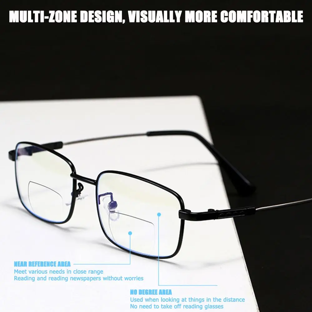 Очки для чтения с мультифокальными линзами для мужчин и женщин, металлическая оправа, при пресбиопии, с защитой от сисветильник