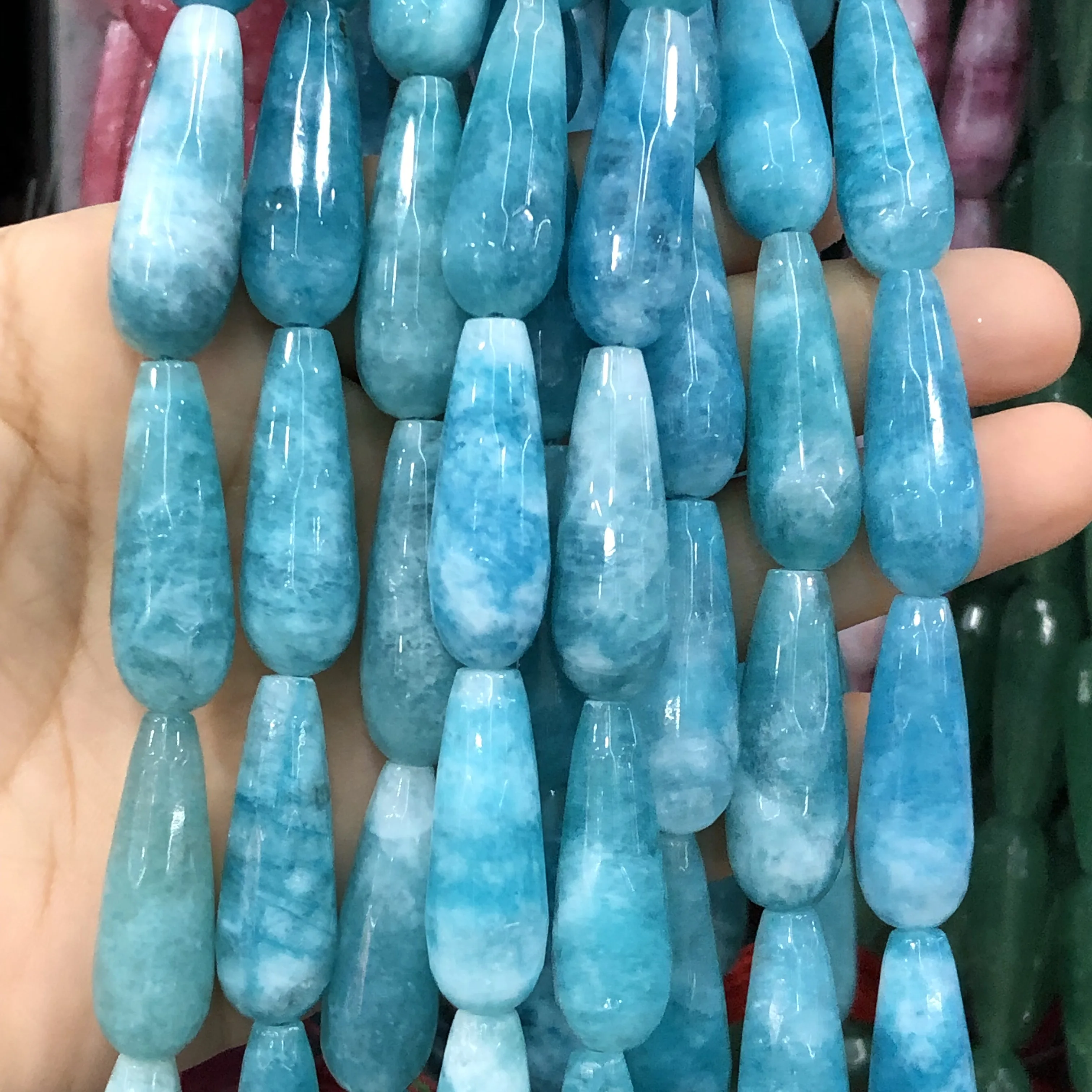 10x30 мм натуральные ограненные в воде синие халцедоновые нефритовые камни свободные разделительные бусины Серьги-браслет
