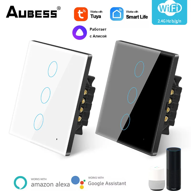 NameAubess EU Tuya WiFi Smart Light Switch 10A 1 2 3 4 Gang Touch Sensor