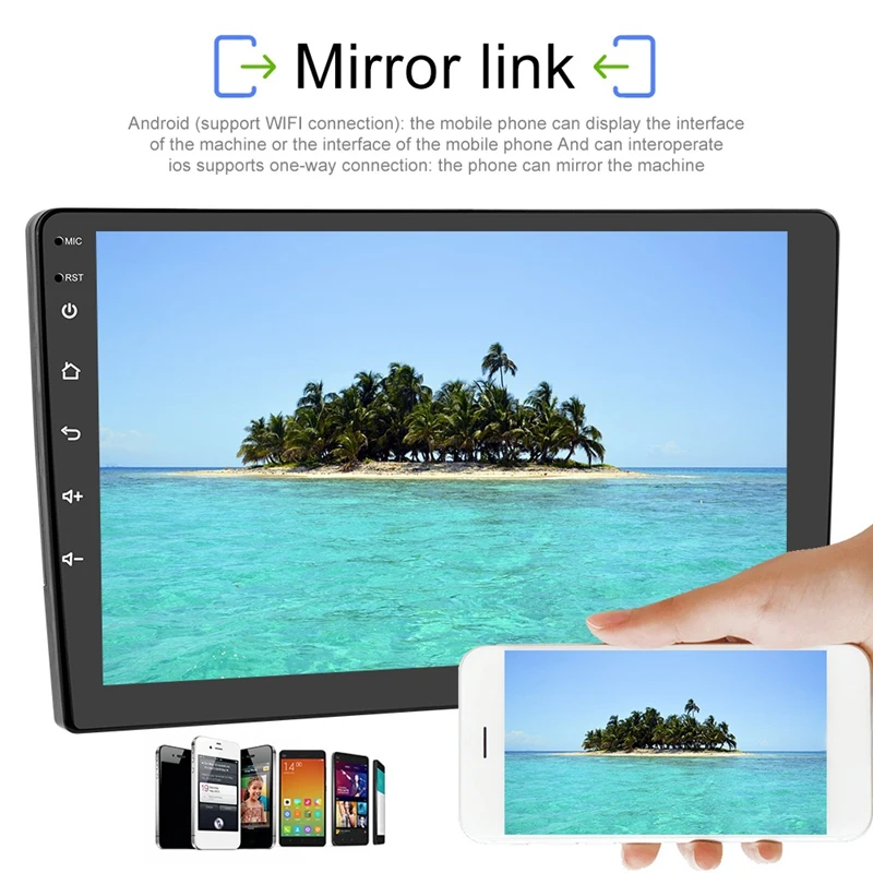 Особенности:HD 10,1 дюймов 2.5D Закаленное стекло зеркало Авто радио mp5 плеер.Встроенная gps-навигация: пользователи могут покупать напрямую из play store для автономной навигации.Управление рулем: через него вы можете управлять функциями, которые вам нужны, с помощью руля, более удобным. Встроенный Bluetooth с A2DP/Hands Free/телефонной книгой.Поддержка нескольких языков: Поддержка Языков, до 40 национальных языков.Fm-радио: онлайн-музыка, вы можете передавать музыку на автомобильный стерео FM, чтобы наслаждаться стереозвуком автомобиля, с 18 предустановленными станциямиБеспроводная система Carplay: Беспроводная система Carplay в автомобиле может тесно интегрировать устройство iOS и iOS с системой приборной панели. Используйте rs, которые используют Carplay, можно подключить к автомобильной системе через Bluetooth для реализации голосовой навигации, совершать звонки, отправлять и получать сообщения и слушать музыку. Он доступен только для iPhone.Характеристики:Система: Android 10,1Набор микросхем: 8227L-DEMOПамять: 1 Гб (RAM)+ 16 Гб (ROM)Разрешение экрана: 1024*600Зеркальная ссылка: Android/IOSРадио диапазон: FM/RDSРадиочип: MTKВыходная мощность: 4*45 ВтРабочая температура:-40 ℃-80 ℃Функция управления рулем: ПоддержкаВерсия Bluetooth: 4,0Чип усилителя мощности: AC7388Видеовыход: ПоддержкаКарты: Встроенные автономные картыWIFI: поддержкаUSB: двойной USB интерфейсФормат аудио: APE/FLAC/WAV/MP3/WMA и т. Д.Формат видео: MKV/RMVB/AVI/MP4/MDV и т. Д.Формат изображения: PNG/JPEG/JPG/GIF/WBMP/BNP и т. Д.Заводское ключевое слово: 8888Цвет: черныйМатериал: АБС + металлРазмер: 250х145ммПосылка:1 * Автомобильный MP5 плеер1 * кабель питания1 * GPS антенна1 * вход камеры1 * RCA вход и выход2 * USB кабель2 * металлическая рама4 * Винт1 * руководство на английском языкеТолько вышеуказанная посылка, другие товары не включены.Примечание: светильник и различные дисплеи могут привести к тому, что цвет товара на картинке немного отличается от реального. Допускается погрешность в измерениях +/- 1-3 см.