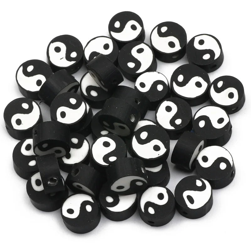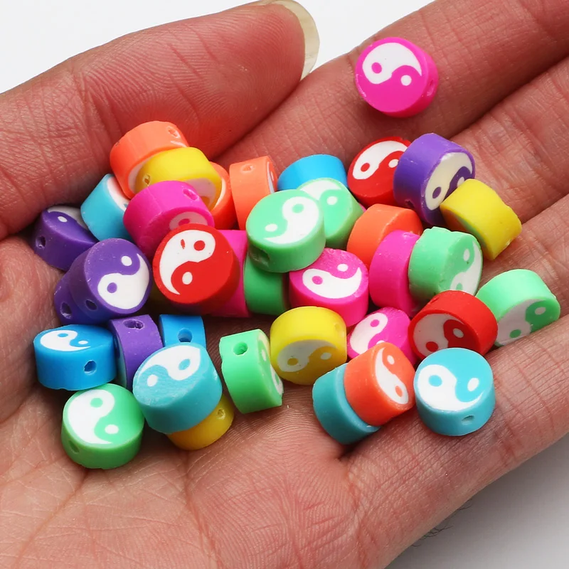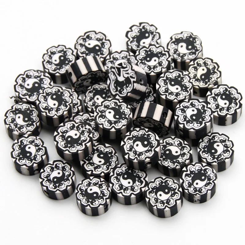 Черно-белые бусины из полимерной глины с узором тайчи, круглые плоские бусины-разделители Инь-Янь для изготовления ювелирных изделий, аксессуары ручной работы