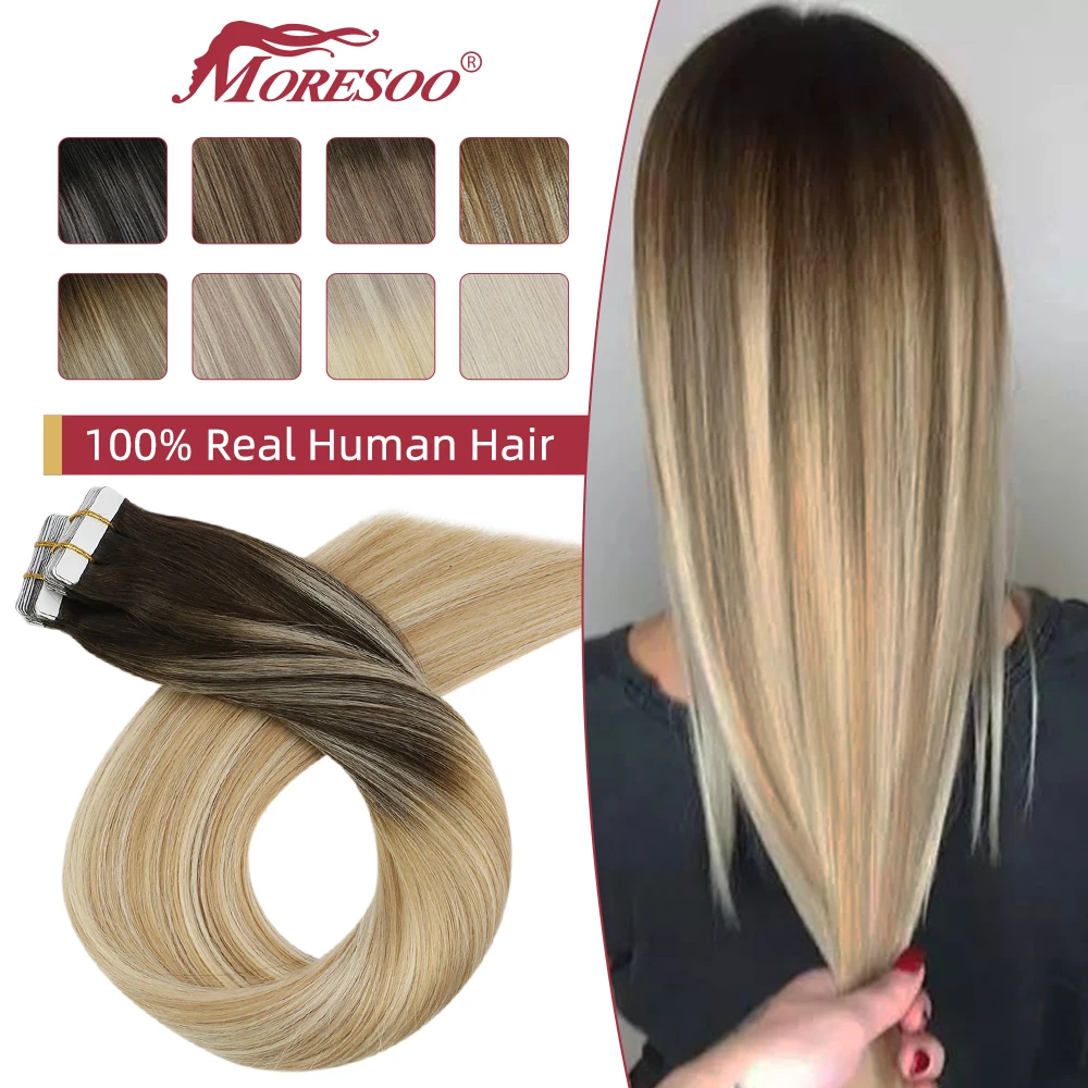 Лента для наращивания волос Moresoo, человеческие волосы, невидимые бесшовные натуральные волосы, прямые накладные волосы без повреждений, блонд, Омбре, коричневый волосы натуральные для наращивания