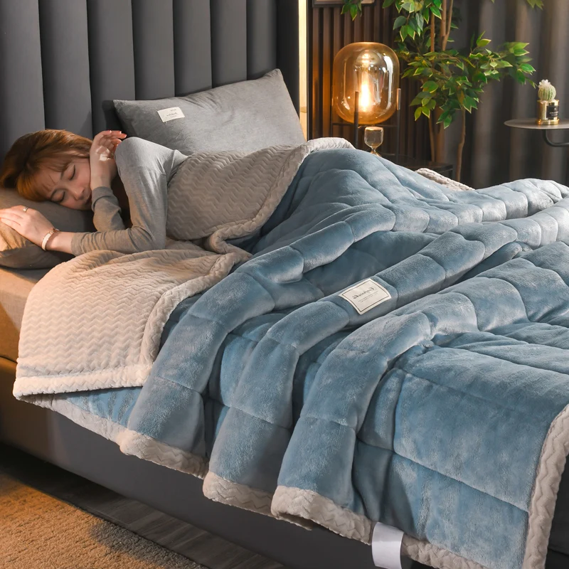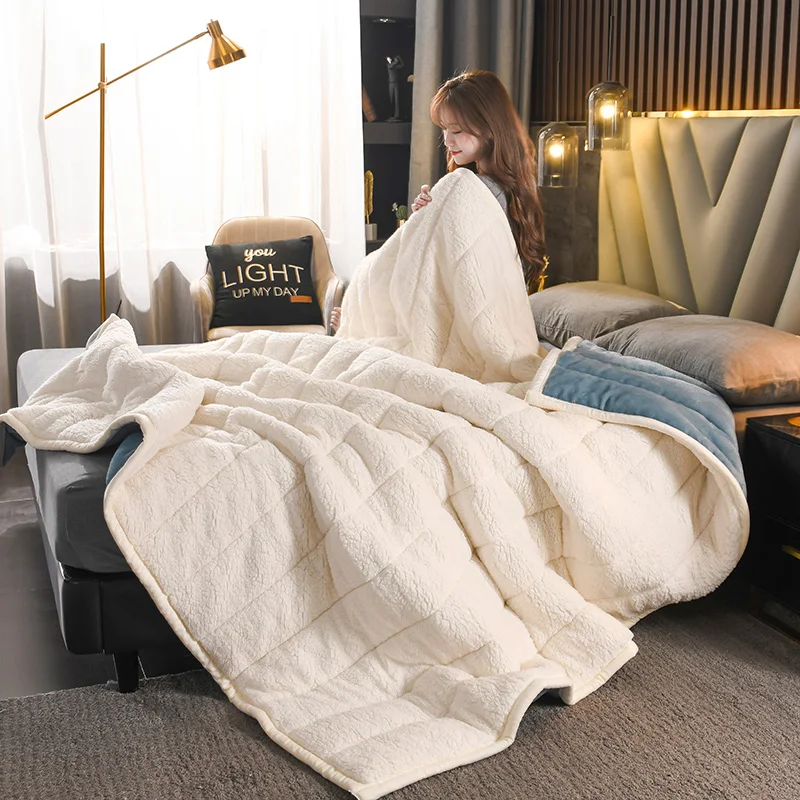 Трехслойное стеганое толстое одеяло из ягненка и кашемира, мягкое о...