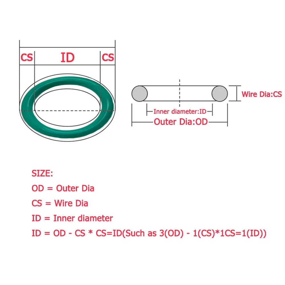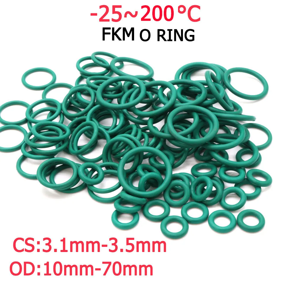 Резиновое кольцо, зеленое уплотнительное кольцо FKM, уплотнительная прокладка, изоляционное масло, высокотемпературное сопротивление CS 3,1 мм-3,5 мм, стандартное