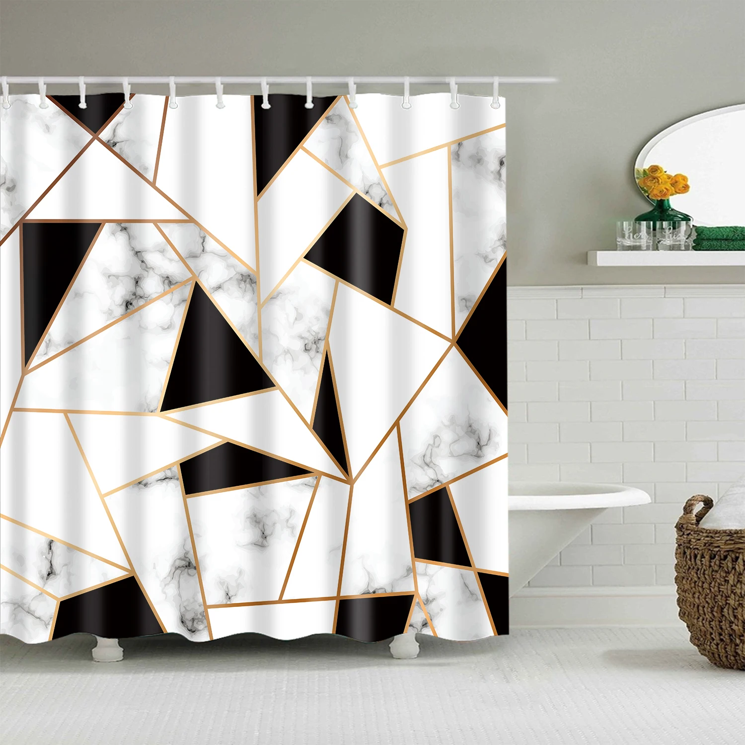 Занавеска для душа с мраморным узором и геометрическим рисунком