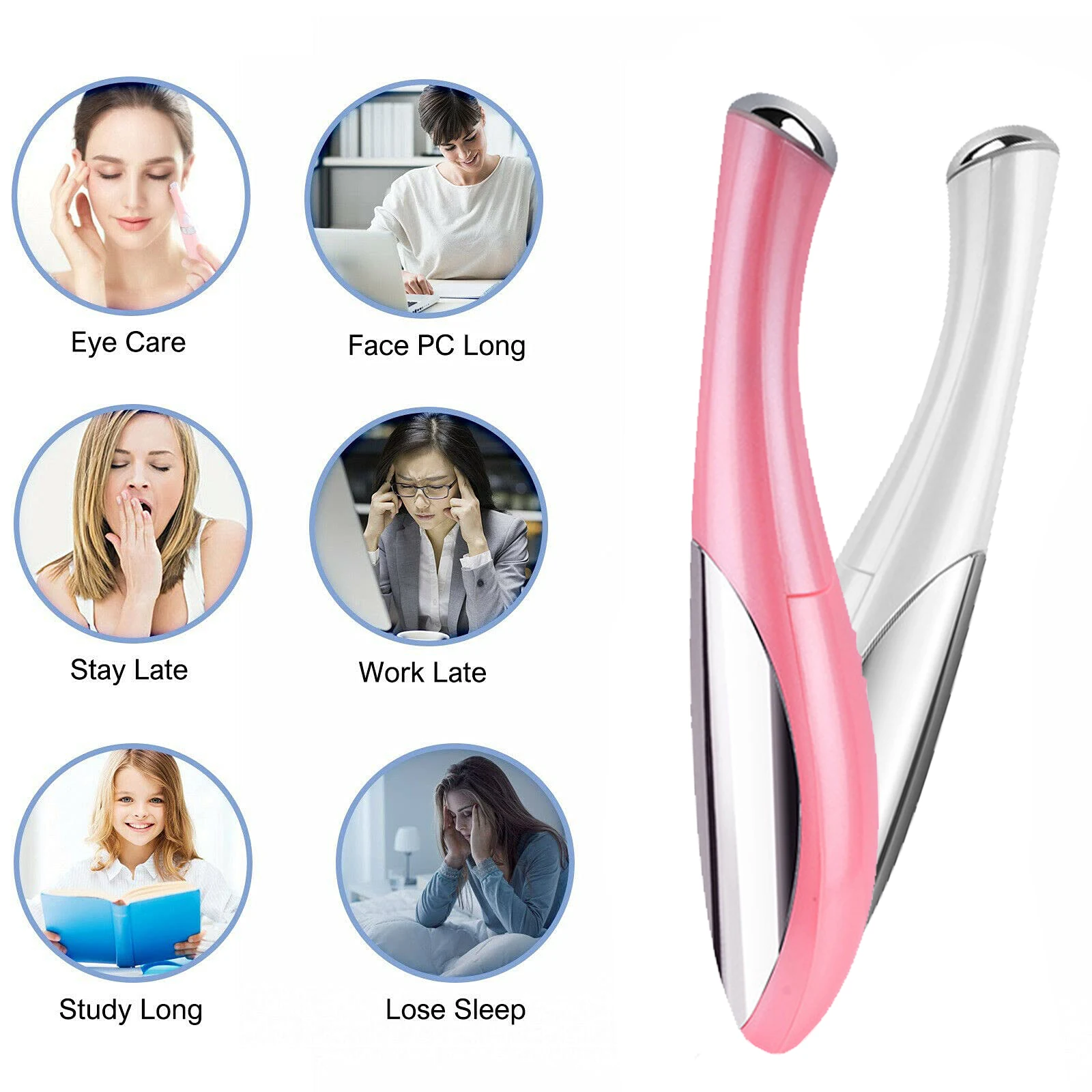 Особенности:1. Ионный и вибрационный массаж, более эффективно удаляет морщины глаз. Черные глаза. Подтягивает кожу вокруг глаз.2. Интеллектуальное сенсорное управление, без кнопки на этой машине. Вы можете наслаждаться личной заботой о красоте в вашем доме, офисе, поездках.3. Мини и эргономичный дизайн, легко носить с собой в ручках и удобно держать в руках.4. Высококачественный подарок для дам.Как использовать?1. Снимите защитную крышку, выскользните крышку аккумулятора и вставьте 1 батарею xAAA (не включая).2. Нанесите желаемый крем для ухода за глазами или эссенцию на часть морщин вокруг глаз или области рта.3. Мягко массируйте кожу вокруг части морщин. Убедитесь, что при использовании прикрепляет Серебряный Датчик пластины. Этот инструмент будет работать автоматически после массажа головы и контакта с кожей.4. Пожалуйста, очистите массажную головку полотенцем или тканью после использования и наденьте шапочку.Спецификация:Источник питания: DC1.5V, 1xAAA батарея (не входит в комплект)Потребляемая мощность: 65 МВтТок покоя:<10uAВремя непрерывного использования: 7-8 часовЧастота вибрации: 158 раз/сПримечания:Из-за разницы между различными мониторами изображения могут не отражать фактический цвет изделия.Сравните размеры деталей с вашими, пожалуйста, учитывайте погрешность в 1-3 см из-за ручного измерения.Пожалуйста, оставьте сообщение, прежде чем дать плохие отзывы, если у товара есть какие-то проблемы.Спасибо за понимание.