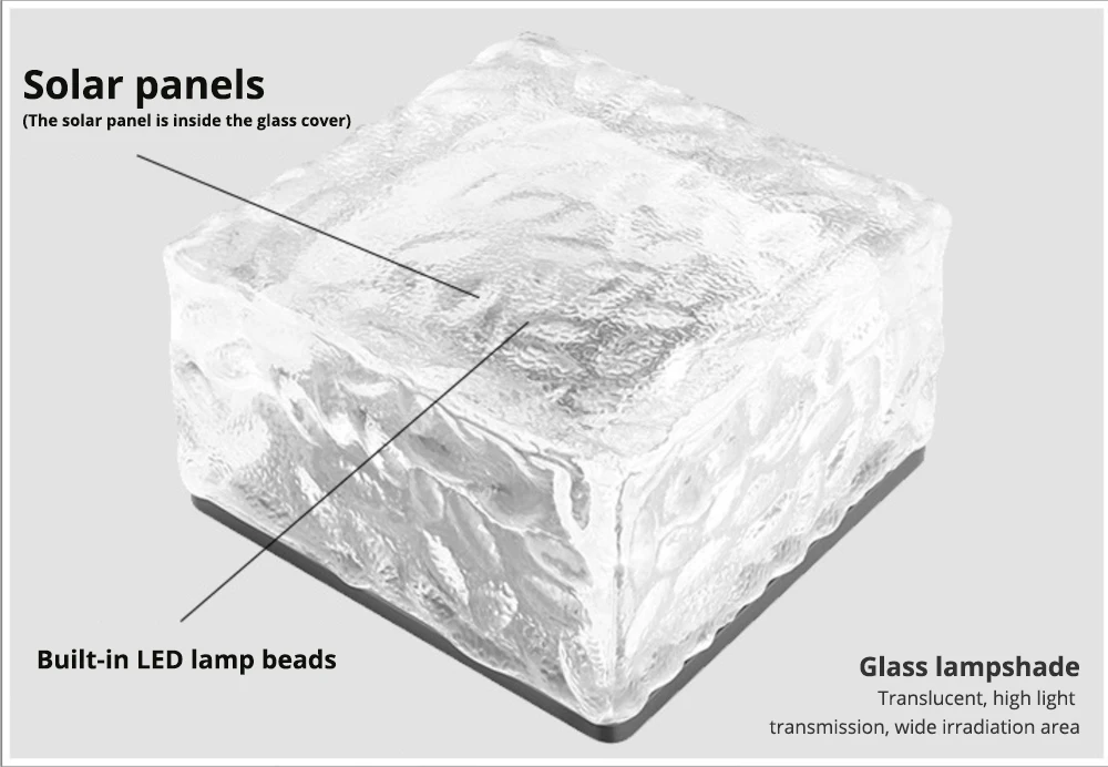 Питание от солнечной энергии: солнечный кирпичный светильник s, зарядка через солнечный светильник в течение дня и светильник ночью. Солнечный ледяной куб светильник, идеально подходит для места, где обычные электрические поставки не доступны. Работающий от источник солнечной энергии встроенные внутри, вы можете просто установить эти стеклянный кирпич светильник s в любом месте, что позволит разрешить доступ к солнцу, чтобы позволить им.Солнечный датчик: солнечный кирпичный светильник s, автоматически светильник в ночное время и выключается в дневное время, автоматическая работа, удобный в использовании. Функции Manul-Переключатель ВКЛ/ВЫКЛ расположен на кирпичной основе, чтобы помочь сохранить энергию, когда она не используется.Прочный и простой монтаж: пожалуйста, не помещайте их в воду напрямую. Этот Солнечный кирпич светильник не погружен, солнечный ледяной куб светильник, прочная пластиковая основа и матовое стеклоПредотвращает эрозию и выдерживает различные Погодные условия и водонепроницаемость. Солнечный кирпичный светильник s, никаких проводов не нужно связываться со стеклянным кирпичным светильник s, перезаряжаемая батарея включена в ледяной куб Солнечный Путь кирпичный светильник.Стиль хрустального кирпича: светильник становится мягким через матовое стекло, креативное украшение в саду, чтобы создать романтическую атмосферу. Солнечный ледяной куб светильник, идеально подходит для наружных зон, где нужен дополнительный светильник, светильник en glimmer на солнечных батареях, квадратные брусчатки идеально подходят для прихожей, патио и подъездных дорожек.