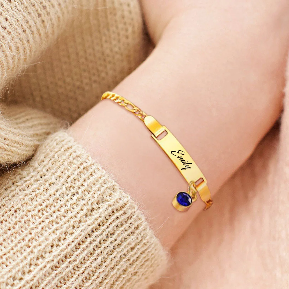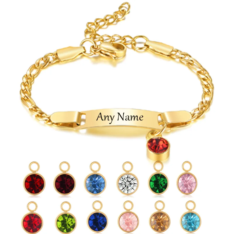 Гравировка Персонализированные ID ребенка браслет с камнем рождения...