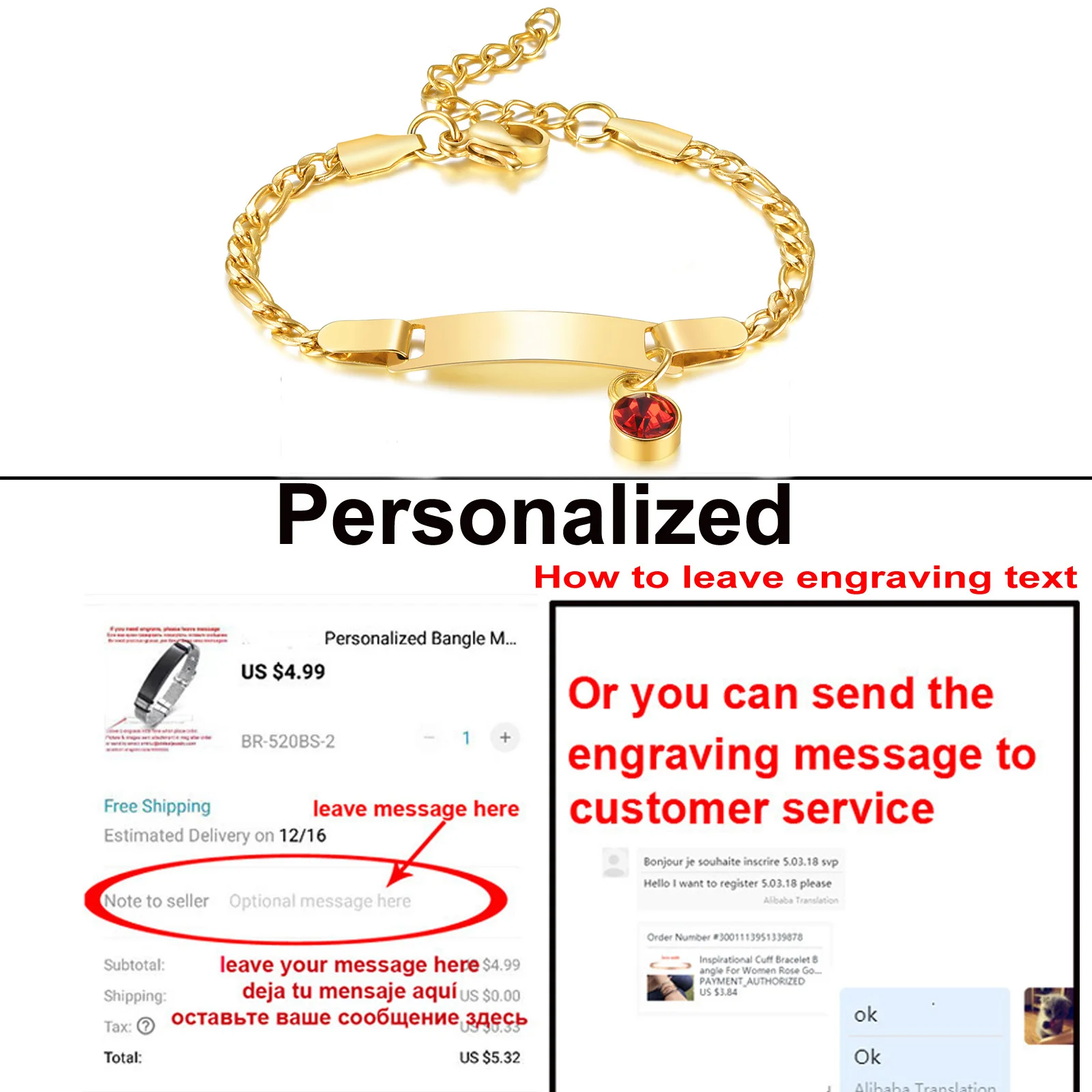 Это персонализированный браслет из нержавеющей стали для женщин, вы можете заказать имя,Дата, логотип, изображение на браслете. Фигаро звено цепи bralcelet birthston с позолотой длина 16 см с5 см (удлиняющаяся.