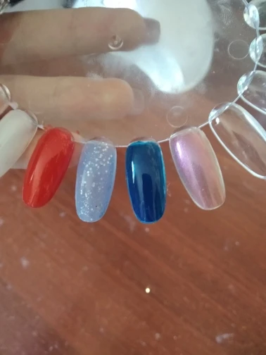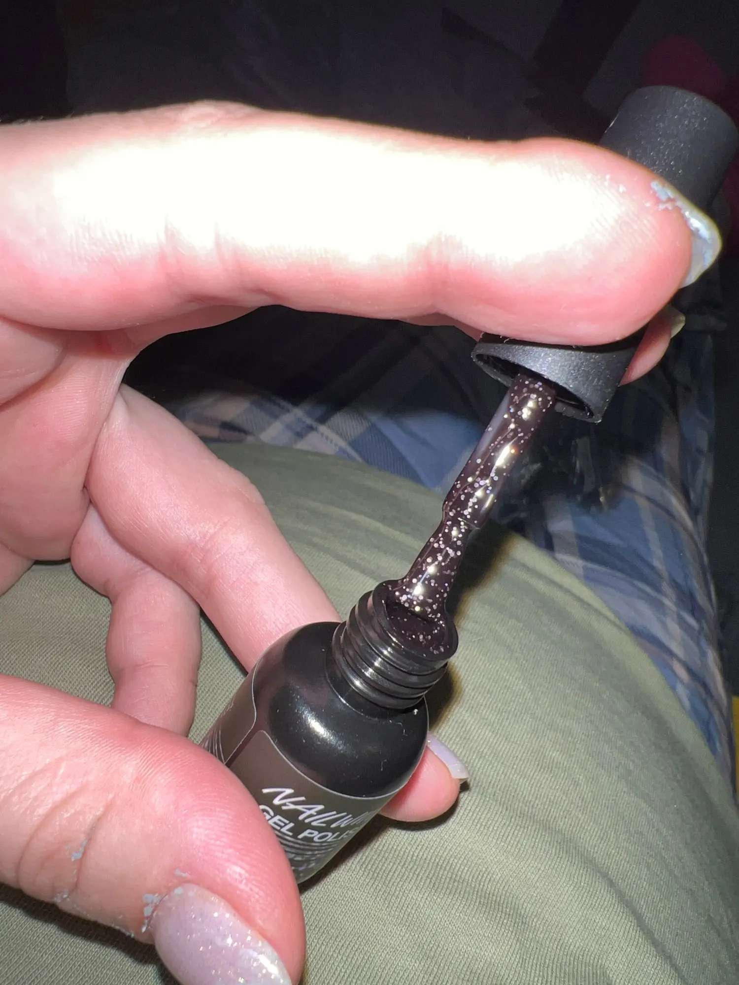 плотный, хорошо пигментированный, ложится без проплешин. цвет непонятный грязно-голубой, издали отдающий сиреневым, но очень красивый, хорошо смотрится и под глянцевым топом и под матовым. пузырёк полный, пришёл хорошо упакованный, спасибо продавцу за хороший товар, спасибо Али экспресс за качественную доставку.
